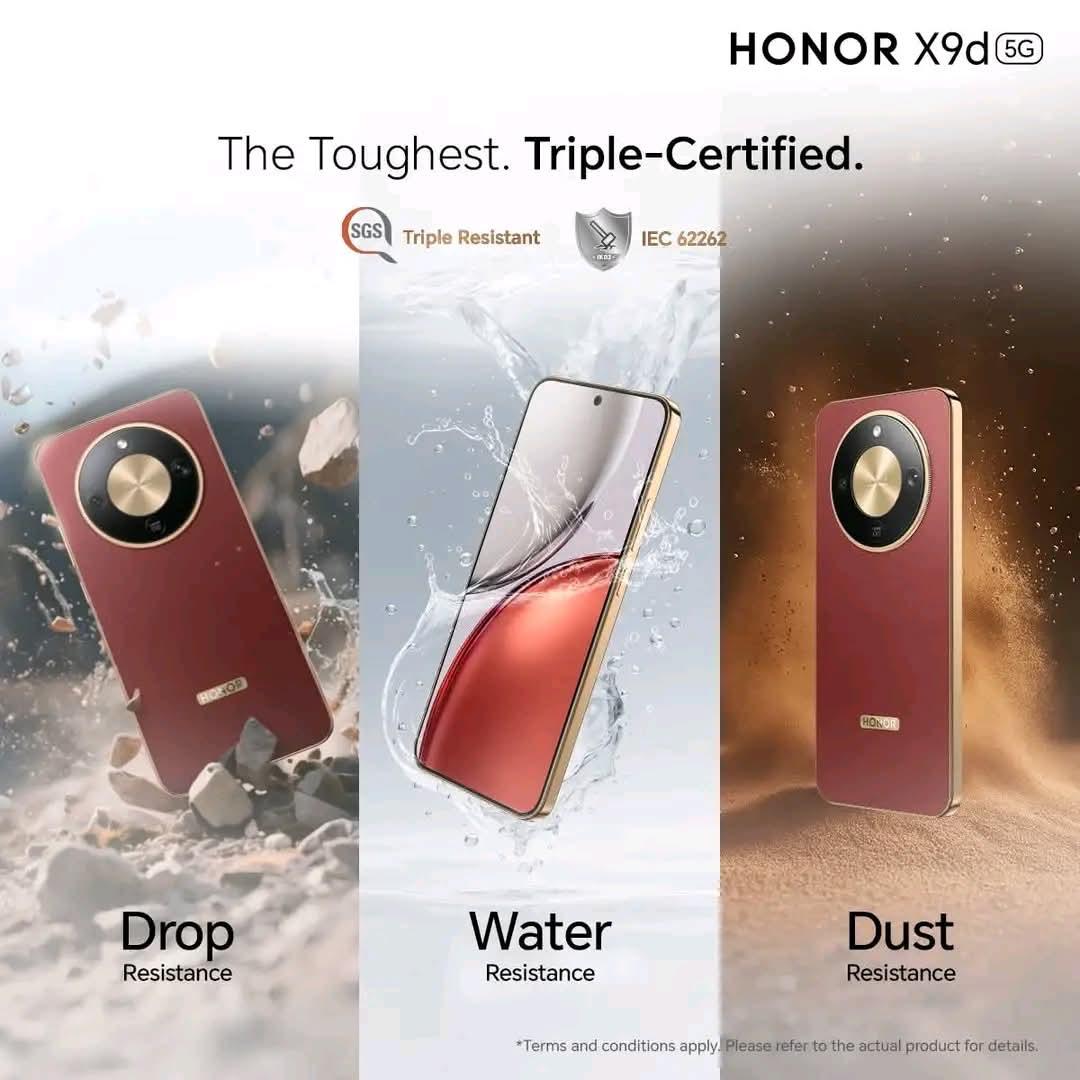 هاتف HONOR X9d 5G مصمم ليكون الأقوى في فئته، يجمع بين الأداء العالي والمواصفات الفائقة في تصميم أنيق ومتين. يتميز بمقاومة استثنائية للماء والغبار والسقوط، ليمنحك ثقة في كل مغامرة. مزود بكاميرا مذهلة بدقة 108 ميجابكسل، وبطارية عملاقة بسعة 8300 مللي أمبير تدوم لأيام، مع تقنية الشحن السريع 66 واط لتبقى على اتصال دائم دون انقطاع. شاشة OLED فائقة الدقة تمنحك تجربة عرض غامرة ومبهرة في كل لحظة.