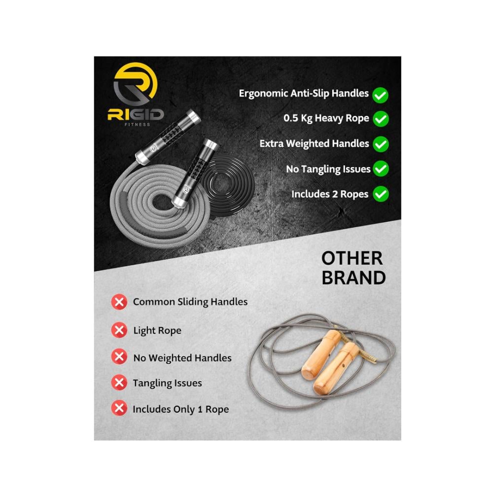 - حبل قفز ثقيل خالٍ من التشابك - جرب تمارين سلسة مع حبل القفز الموزون الخاص بنا، والذي يتميز بمحامل كروية مزدوجة متطورة لدوران خالٍ من التشابك وسريع وسلس. اقفز بثقة وركز فقط على أهداف اللياقة البدنية الخاصة بك.