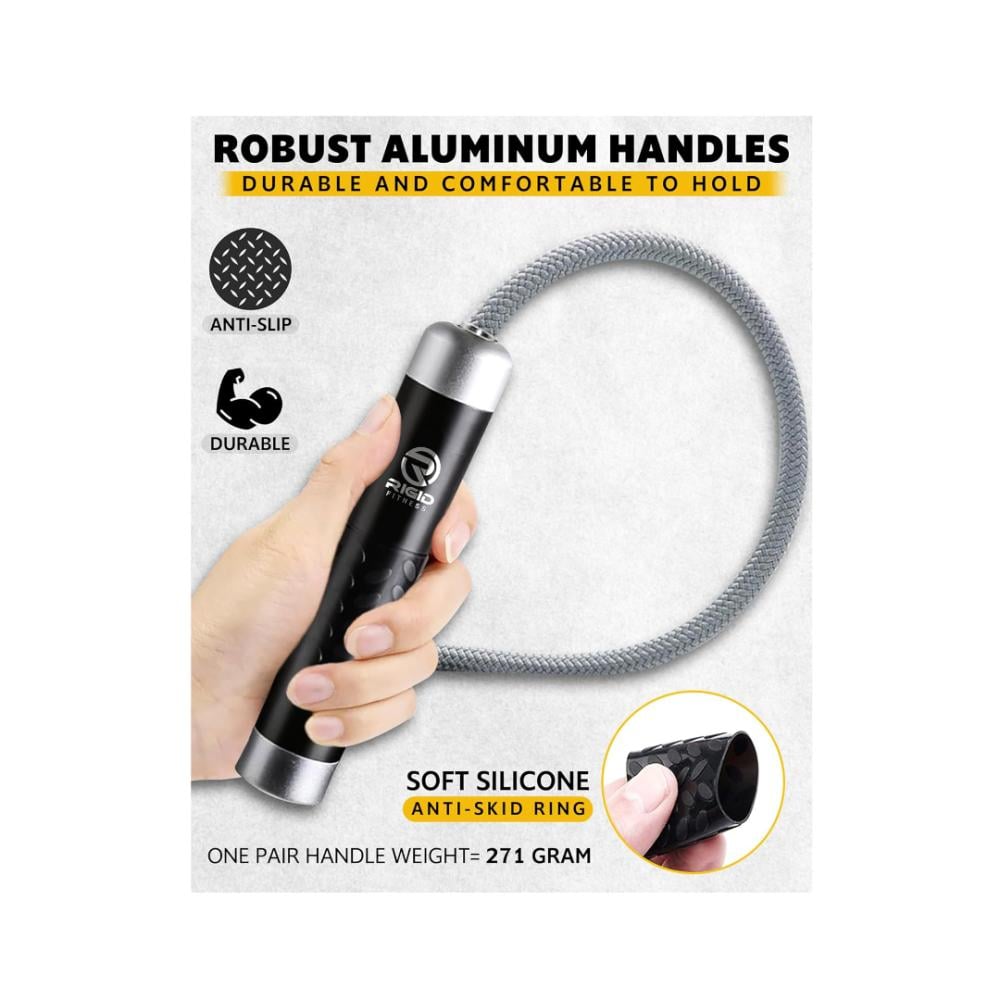- مقابض مريحة من الألومنيوم والسيليكون - مصنوعة من أجل الراحة والكفاءة، تم تصميم مقابض الألومنيوم مع مقابض السيليكون لمنع الانزلاق، وتعزيز قبضتك أثناء التعرق. تزيد أنماط السيليكون المرتفعة من الاحتكاك، مما يضمن بقاء المقابض بأمان في يديك خلال كل جلسة مكثفة.
