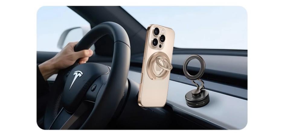 - مغناطيس مزدوج: نظام تثبيت مغناطيسي مزدوج متوافق مع MagSafe يضمن قوة وثبات عالي سواء مباشرة على الهاتف أو عبر الغطاء.