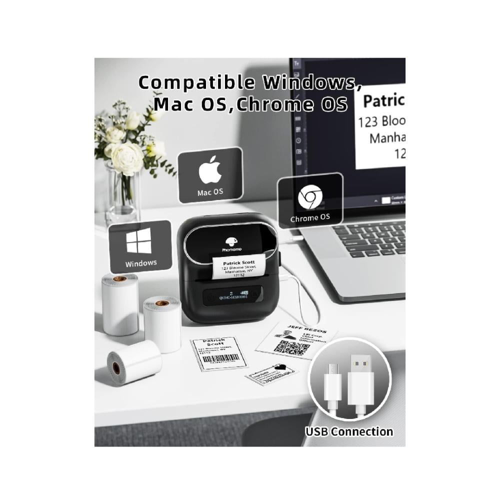 - توافق قوي - تتميز طابعة الملصقات من فوميمو بتقنية البلوتوث بتوافق عالٍ مع الهواتف المحمولة التي تعمل بنظام IOS والاندرويد من خلال البلوتوث، بالإضافة إلى دعم اتصال USB لأنظمة التشغيل ويندوز وماك او اس وكروم أو أس. شاهد البرنامج التعليمي الخاص بنا للحصول على تجربة خالية من المتاعب.
