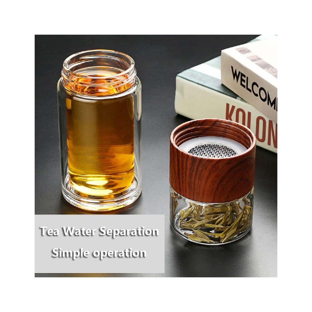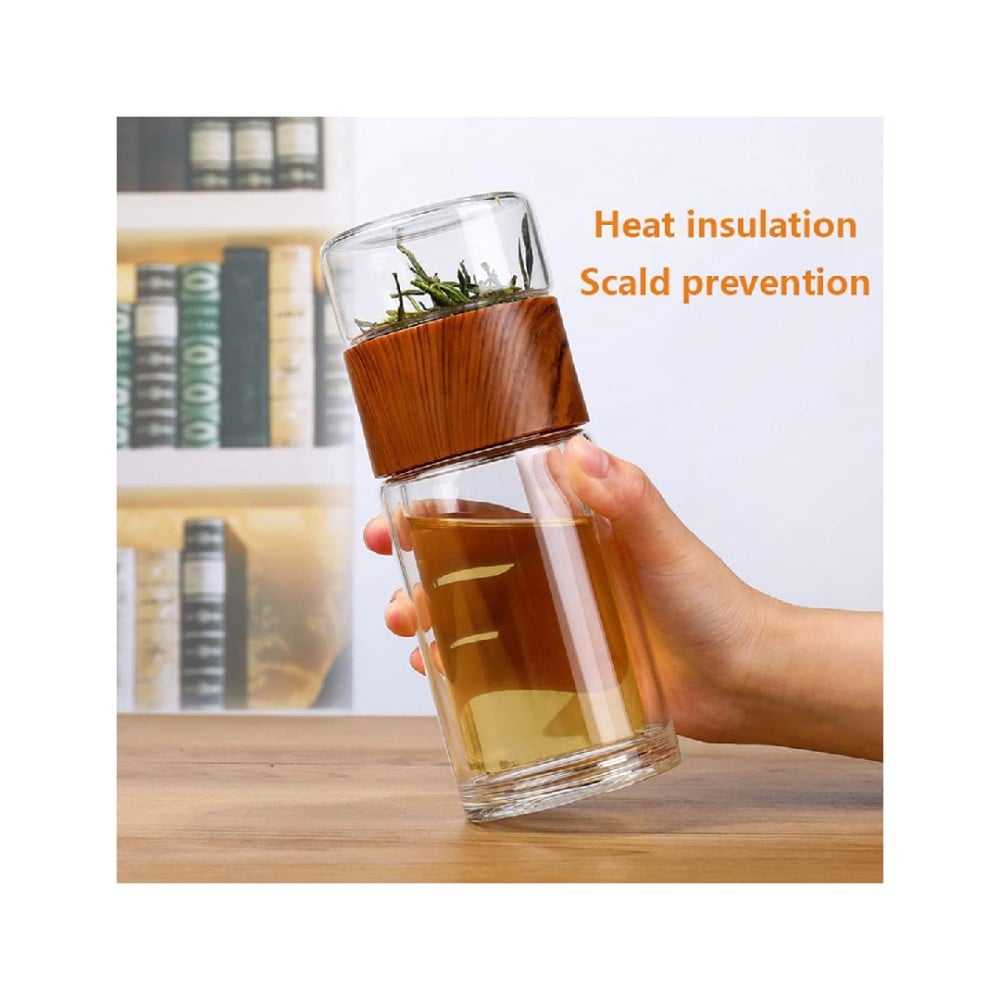 زجاجات الشاي 230 مل التي نقدِّمها مصنوعة من زجاج معزول بجدار مزدوج، مع مصفاة للشاي من الستانلس ستيل وغطاء.