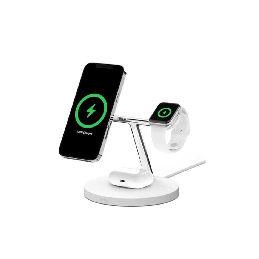 بيلكن - شاحن لاسلكي 3 في 1 بقوة 15 واط - ابيض