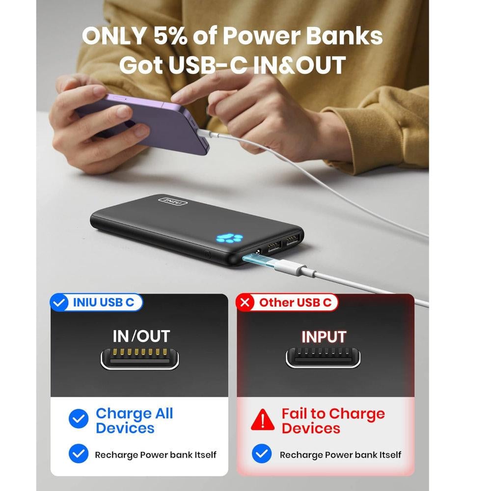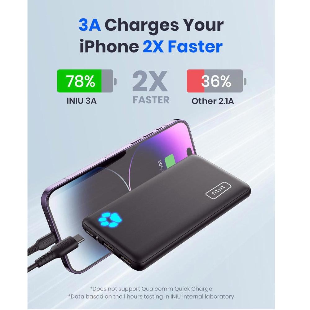 INIU شاحن باور بانك محمول بقدرة 10000 مللي امبير ثلاثي عالي السرعة