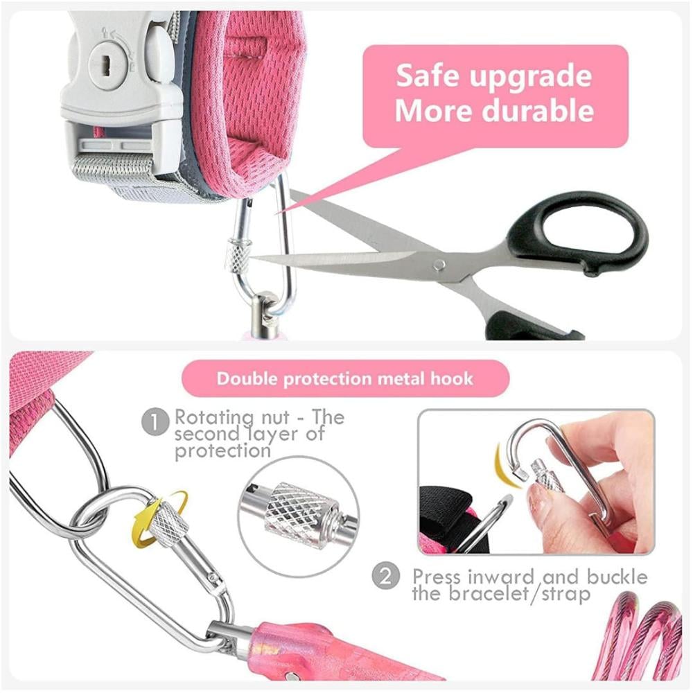 - تصميم قفل آمن - استخدم المفاتيح المرفقة لقفل وفتح رابط المعصم المضاد للضياع وفقًا لتفضيلاتك. لا يمكن للأطفال سحبه أو خلعه. يمكن لأقفال الأطفال منع بعض المشاكل الناجمة عن الفتح الذاتي من قِبل الأطفال في الأماكن المزدحمة