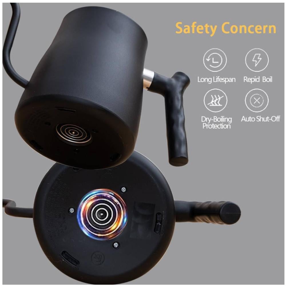 - فوهة بتصميم عنق الإوزة - نظرًا لسرعة تدفق المياه التي تؤثر بشكل مباشر على نكهة ومذاق القهوة المصبوبة، فقد قمنا بتصميم الفوهة الدقيقة الفريدة ذات شكل عنق الإوزة. إنها أسهل وأكثر ملاءمة وراحة في التحكم في سرعة صب المياه عند تحضير القهوة، لضمان أقصى قدر من النكهة واستخلاص الروائح.