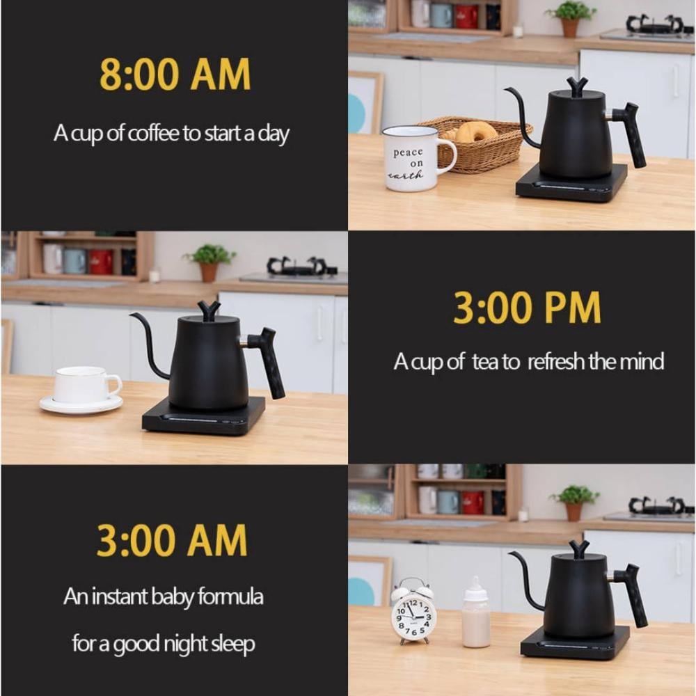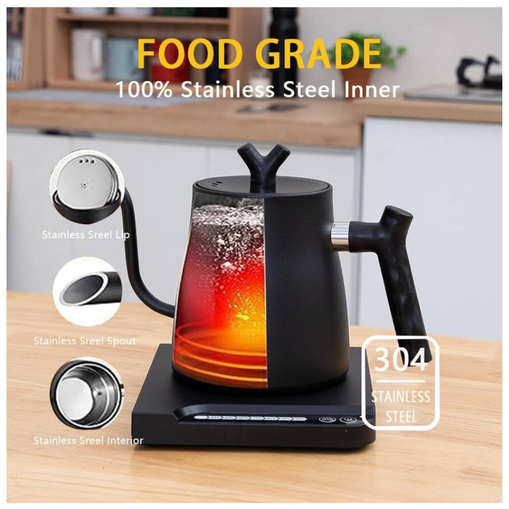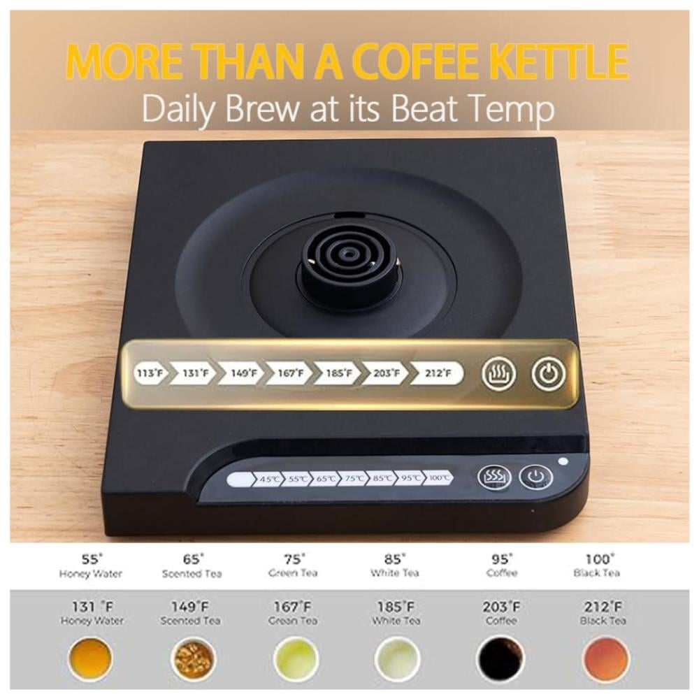 - إعدادات درجة الحرارة - تسمح لك الغلاية الكهربائية باختيار درجة الحرارة المثالية بين 113 إلى 212 درجة فهرنهايت. رائعة لإعداد أوراق الشاي وحبوب القهوة وتعطي رائحة ومذاق مختلف بدرجات حرارة مختلفة، تساعدك غلاية الماء على أن تكون محترفًا في تحضير القهوة والشراب، وحتى المبتدئين يمكنهم إتقان عملية التحضير بشكل جيد، مما يساعد في تحضير القهوة لذيذة وشاي ذو رائحة فواحة