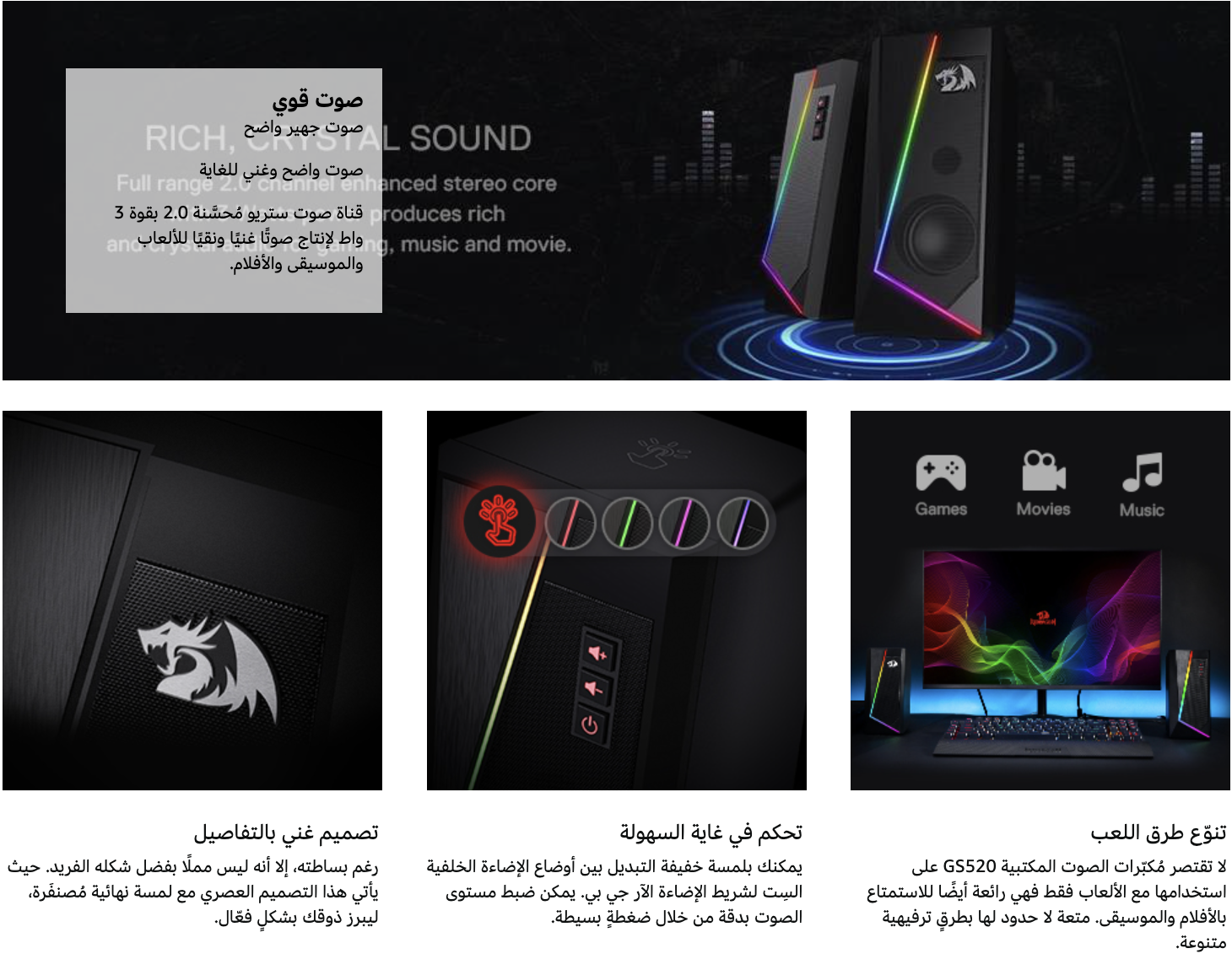 سماعات جهاز الكمبيوتر المكتبي انفيل GS520 من ريدراجون بالفضاء اللوني RGB
