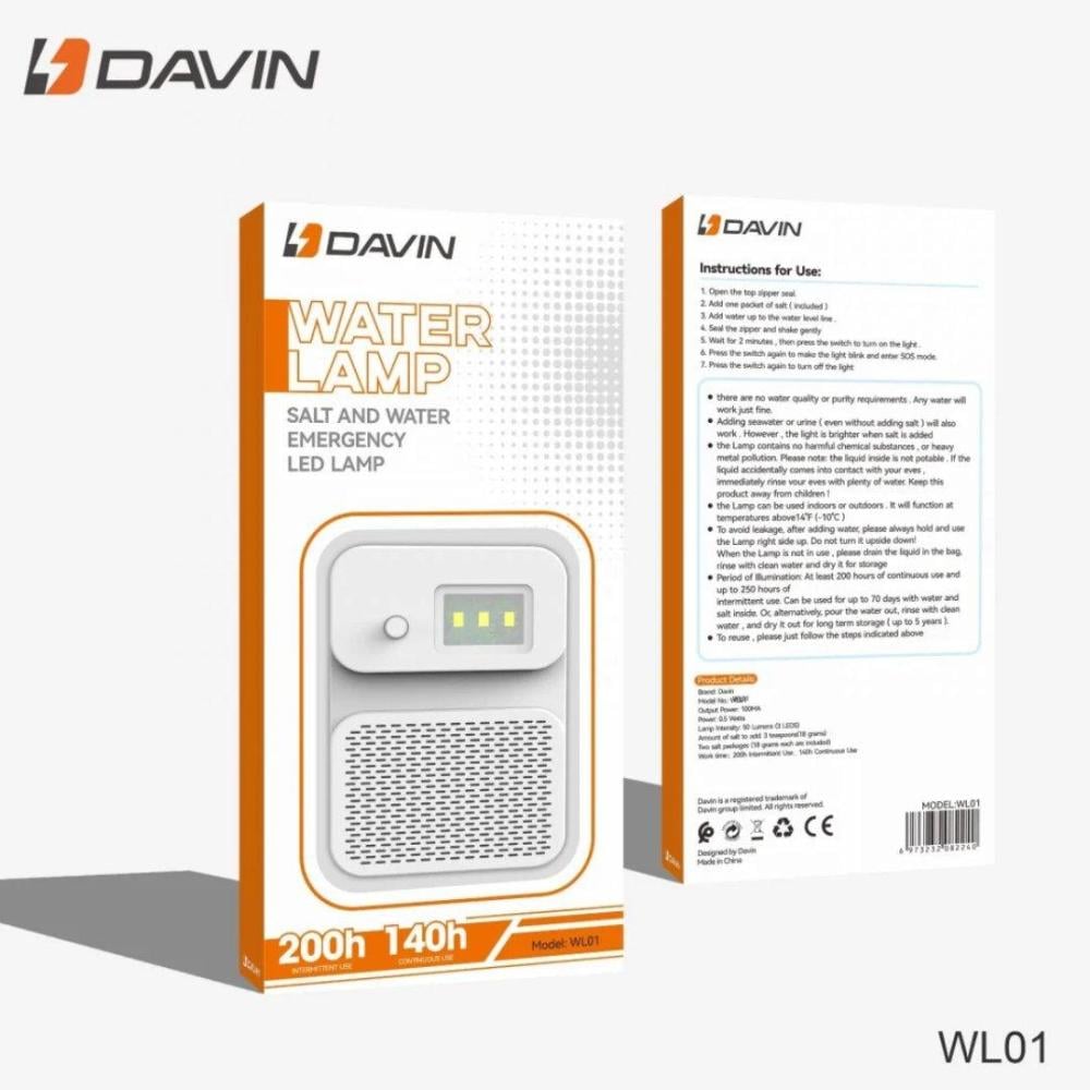 بفضل تقنية الطاقة الهيدروديناميكية، لا يحتاج كشاف الطوارئ إلى بطاريات للتشغيل. يعتمد على تفاعل كيميائي بسيط بين الملح والماء لتوليد الطاقة اللازمة لإنتاج الضوء. هذا يعني أنه لا يوجد مصدر طاقة خارجي يحتاج إلى استبدال أو شحن.