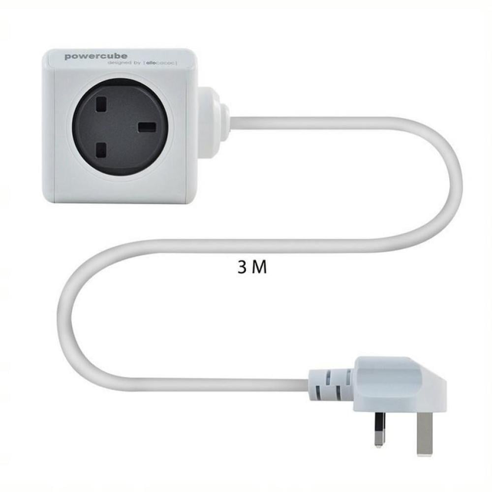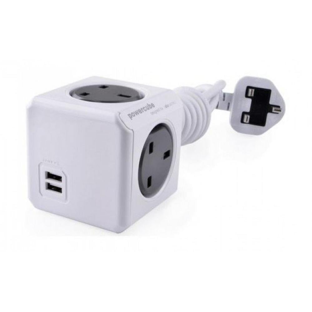 Power Cube - Extension Cord with 3 Sockets and 3 Meter Cable, Plus 2 Charging Ports, Grey