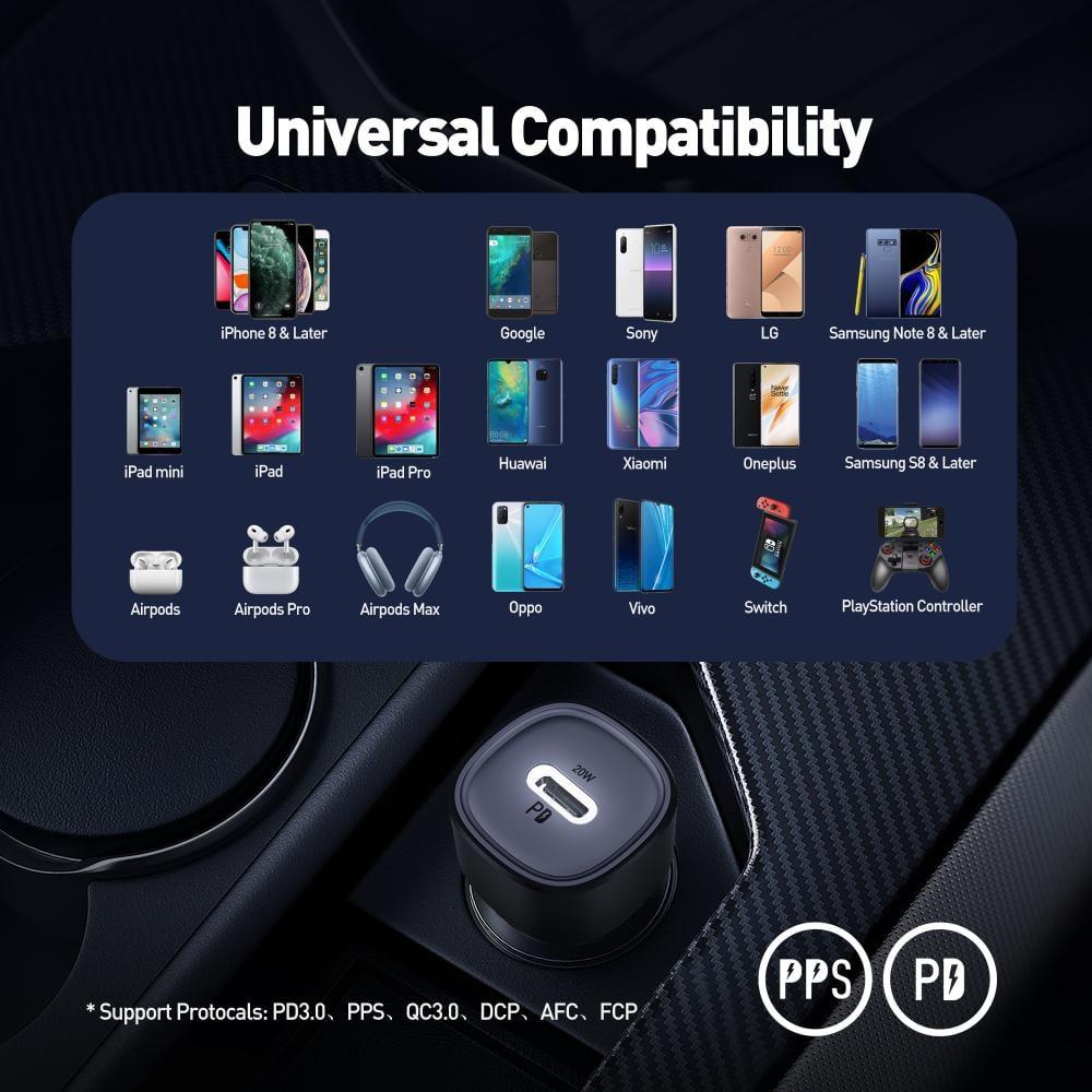 - قدرة شحن 20 واط: يوفر شحنًا سريعًا لمعظم الأجهزة المتوافقة، بما في ذلك الهواتف الذكية والأجهزة اللوحية.