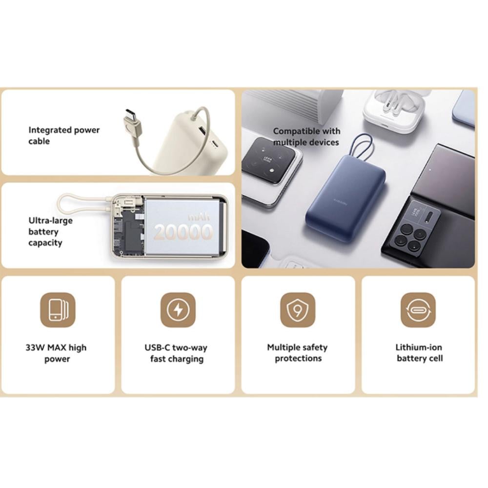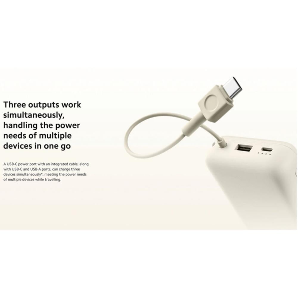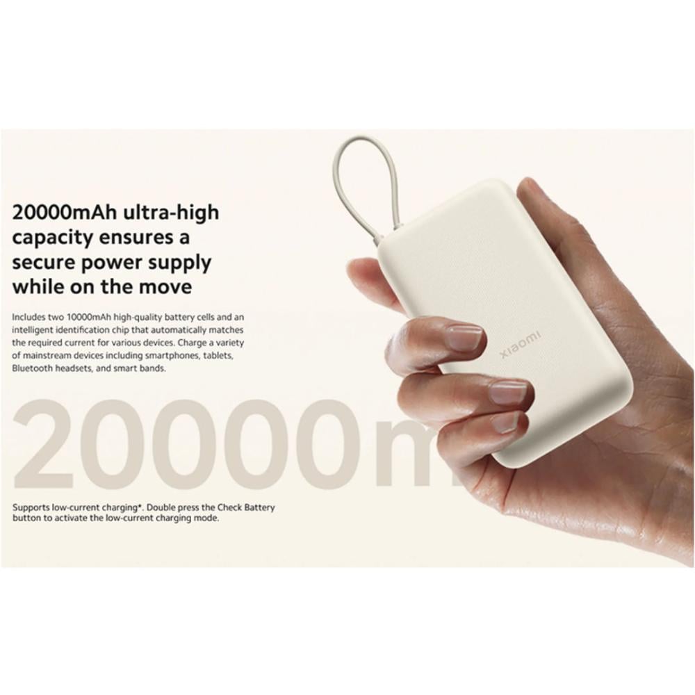 شاومي - شاحن متنقل بمنفذ USB ومنفذ USB-C وسلك مدمج USB-C بسعة 20000 مللي أمبير وبقوة 33 واط BHR8851GL - بيج