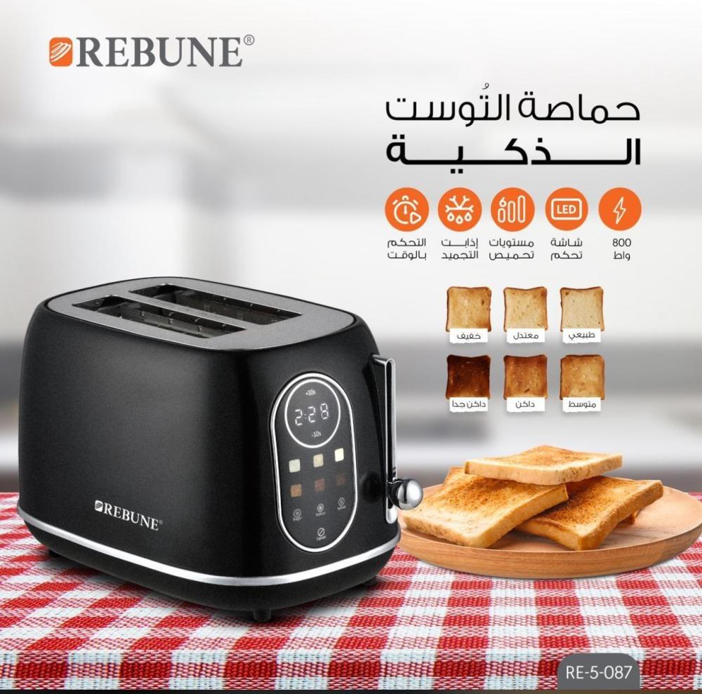 ريبون - حماصة التوست الذكية بشريحتين، شاشة LED مع خاصية إعادة التسخين وإذابة التجميد 6 مستويات تحميص 800 واط - اسود