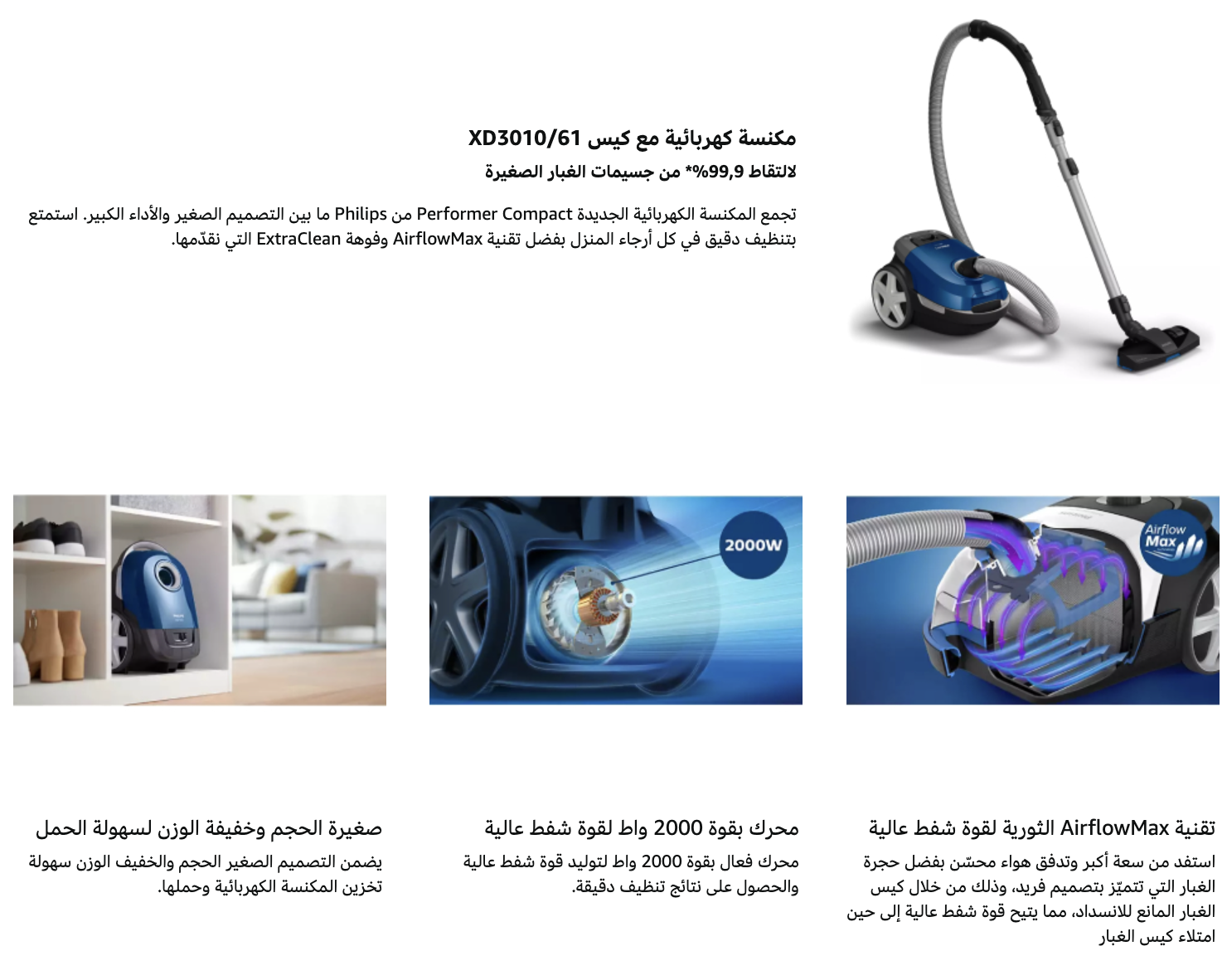 وصف المنتجمع المكنسة الكهربائية الجديدة برفورمر كومباكت من فيليبس، تصميم مدمج يلبي الأداء بالحجم الكبير. استمتع بتنظيف شامل في جميع أنحاء منزلك بفضل ت...