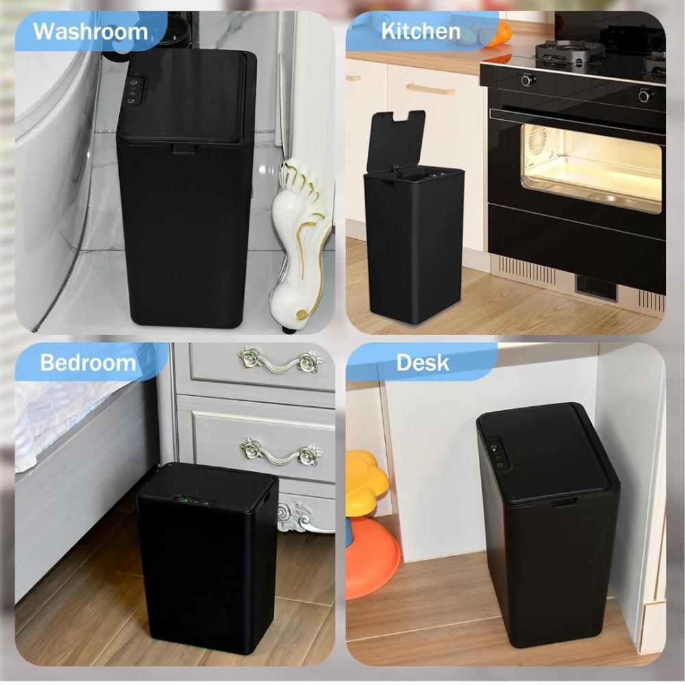 - مقاومة للماء ومتينة - مصنوعة من مواد ABS عالية الجودة ومجهزة بتقنية مقاومة الماء IPX5، سلة المهملات الأوتوماتيكية بسعة 4 جالون مقاومة للماء والرطوبة، مما يضمن استخدام الحمام لفترة طويلة ونظيفة.