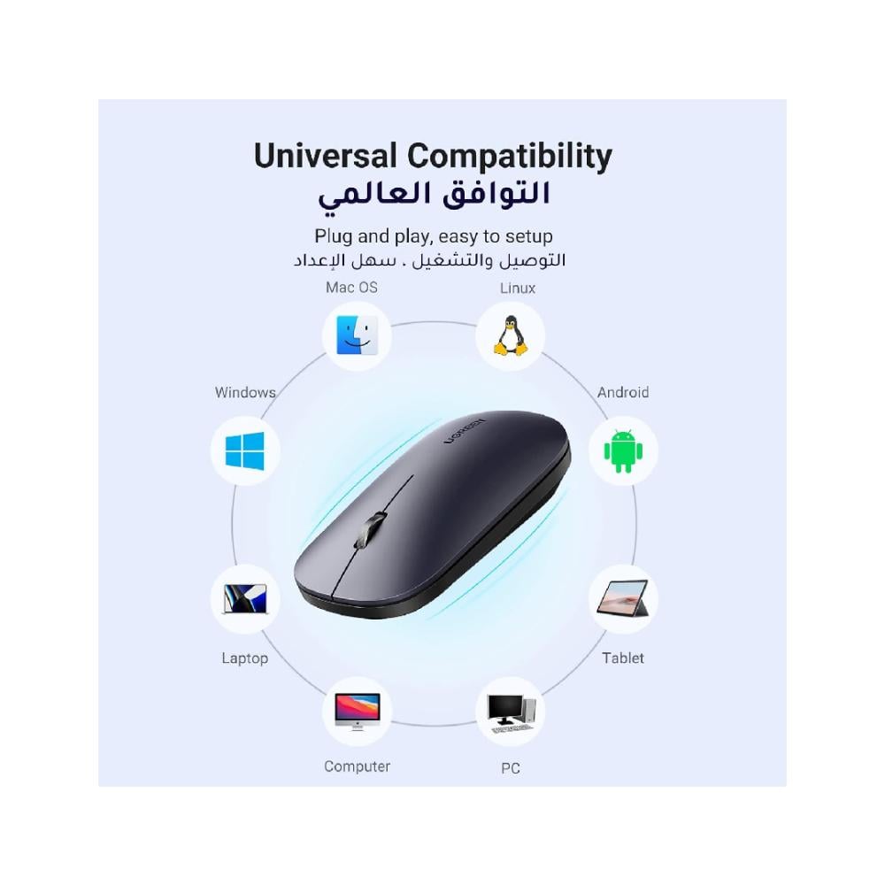 يوجرين - ماوس لاسلكي صامتمواصفات المنتج :تصميم صامت - يمتاز بتصميم صامت، يقلل هذا الماوس اللاسلكي للابتوب من يوجرين بنسبة 90% أثناء الاستخدام. كن مطمئ...