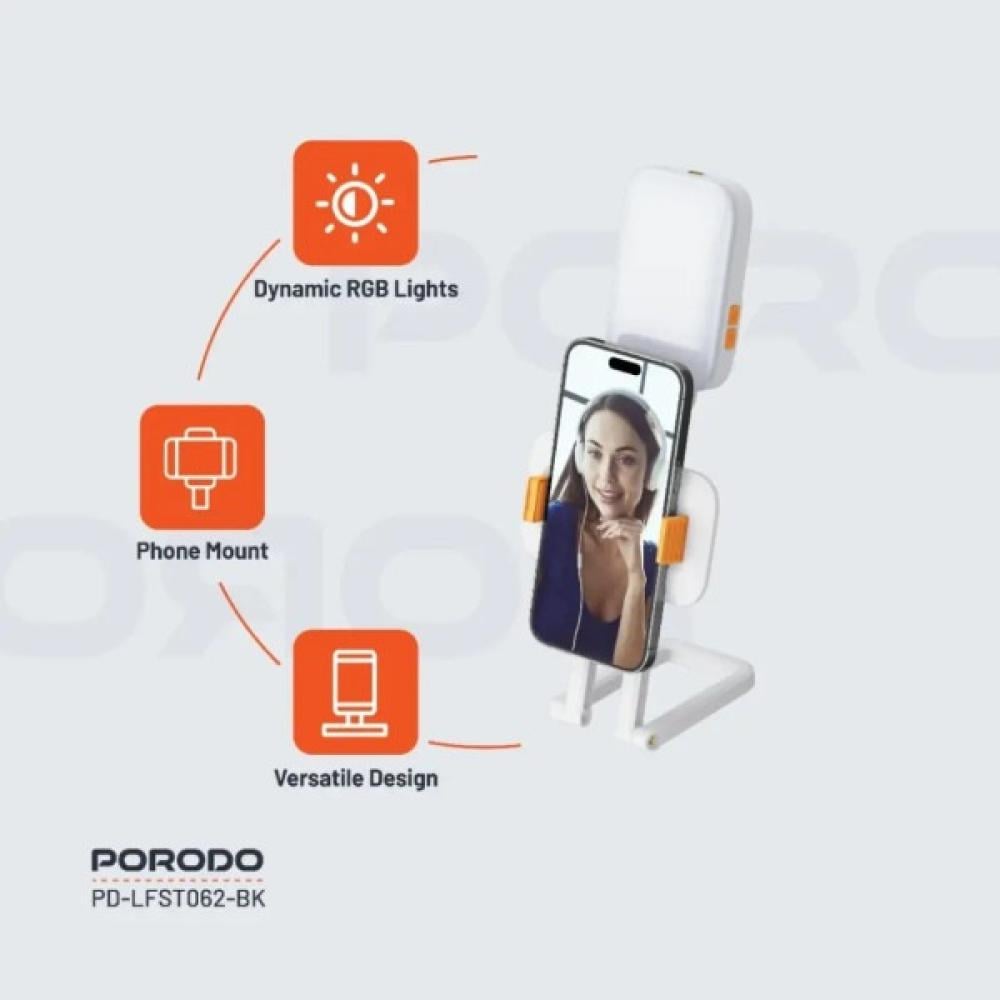 بورودو - حامل هاتف مع إضاءة مدمجة اصفر وابيض للتصوير - الأبيضوصف المنتج: حامل الهاتف بورودو لايف ستايل مو أكثر من مجرد حامل، هو حل إضاءة عصري ومتكامل ...