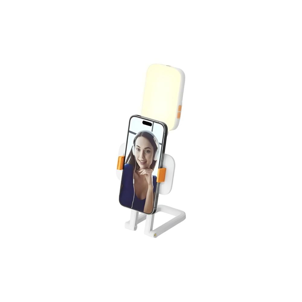 بورودو - حامل هاتف مع إضاءة مدمجة اصفر وابيض للتصوير - الأبيض