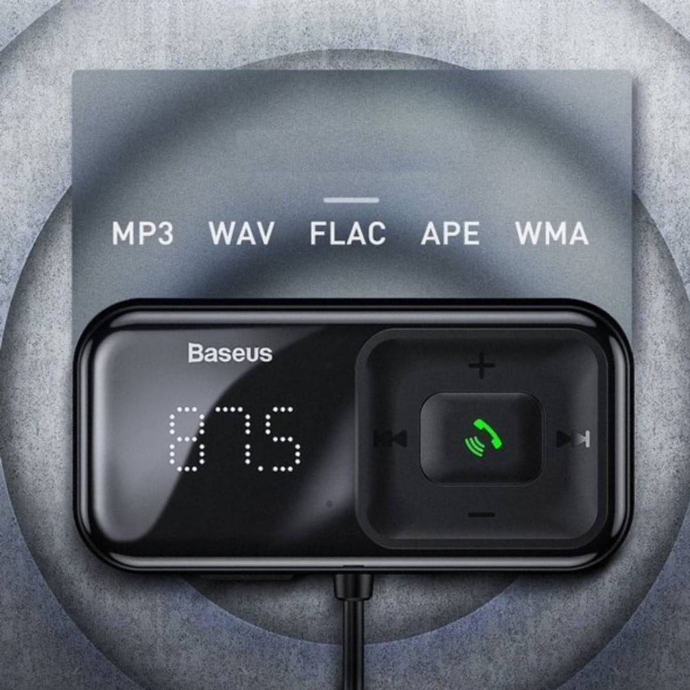 بيسوس - جهاز إرسال FM لاسلكي بلوتوث مع شاحن - أسود