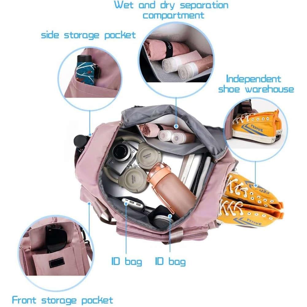 - تصميم قابل لفصل الأشياء الجافة والرطبة - مادة مقاومة للماء عالية الكثافة يمكن أن تساعدك على فصل الأشياء الجافة والرطبة. إذا كان لديك ملابس رطبة ومناشف ولوازم التجميل، فيمكنك وضعها في هذه الحقيبة.