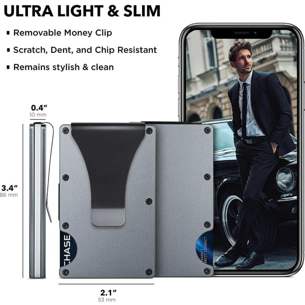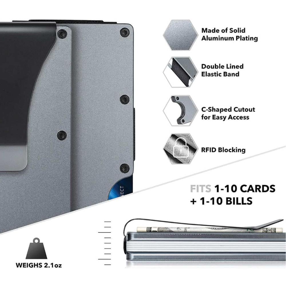 - يسهل التسوق والسفر - حامل بطاقات بمشبك نقود مصنوع من خليط معدني من الألومنيوم عالي الجودة وخفيف الوزن. المحفظة البسيطة مقاومة للخدش والانبعاجات والتشقق. لم تعد تشكو من صعوبة إزالة البطاقات. وزنه 2.5 اونصة. التصميم الصغير والمحمول يجعله مناسبًا للاستخدام التجاري