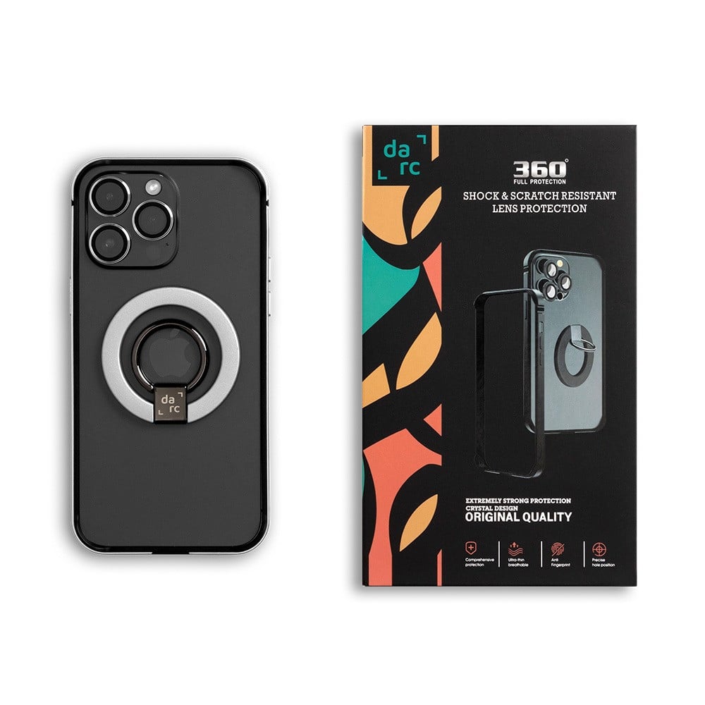 دارك - مجموعة 3 في 1 إيطار + حماية الكاميرة + مسكة ماق سيف لون سلفر