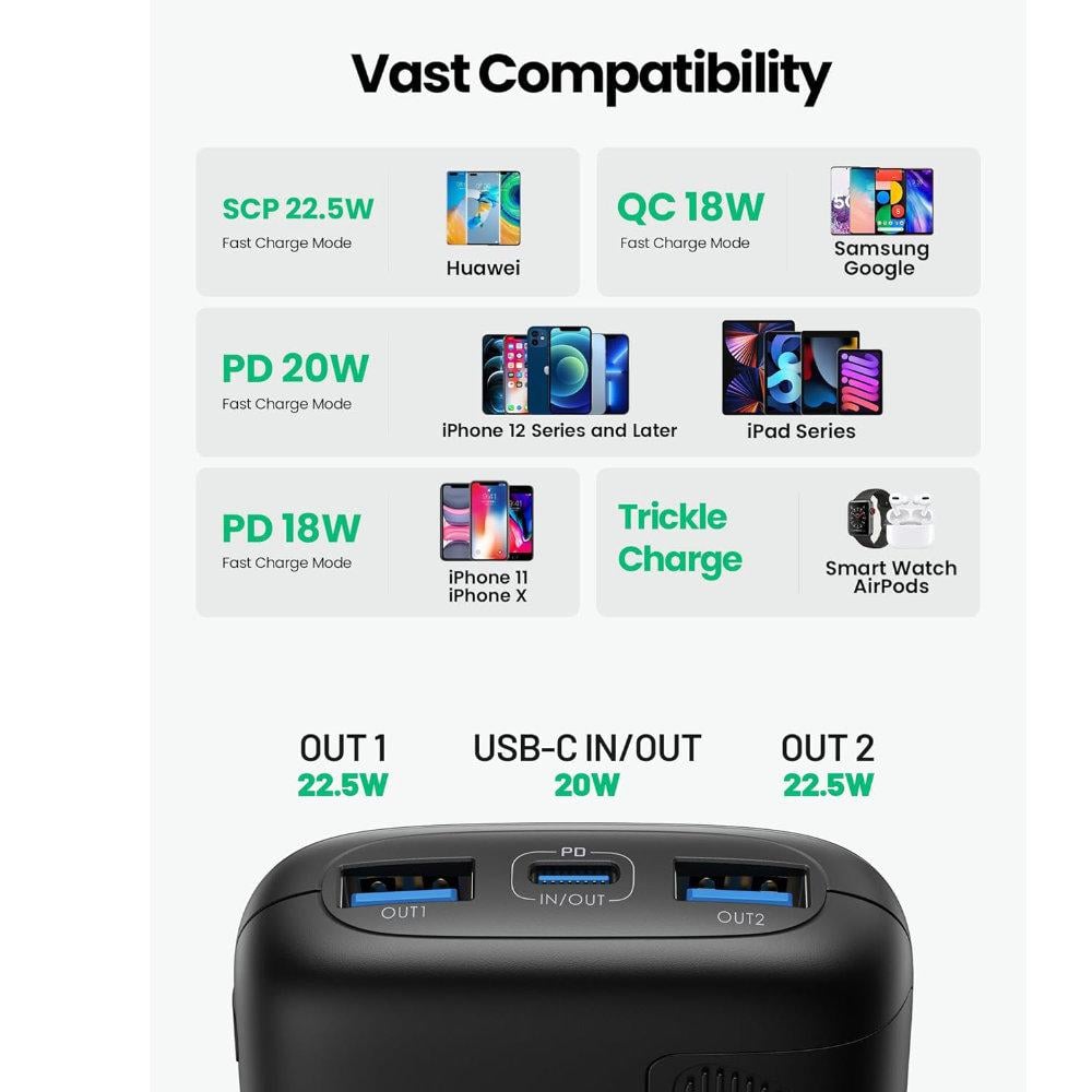 - شحن سريع 22.5 واط - يجمع الباور بانك اي ان اي يو 22.5 واط بين تقنيات الشحن السريع PD 3.0 وQC 4+ الأكثر تقدمًا - فهو يشحن هاتف ايفون الجديد الخاص بك بسرعة مذهلة من 0 إلى 60% في 30 دقيقة، أسرع مرتين تقريبًا من شواحن 2.4 امبير الأصلية..