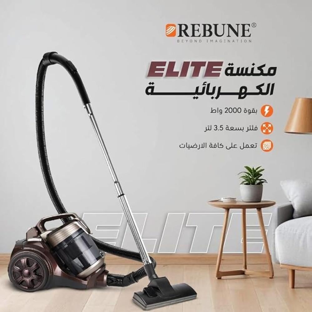 ريبون - مكنسة كهربائية بدون كيس 3.5 لتر، قوة شفط فائقة 2000 واط - بني