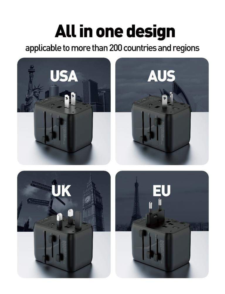 جودا - فيش سفر متعدد المداخل 70 واط مزود بتقنية جان - اسود