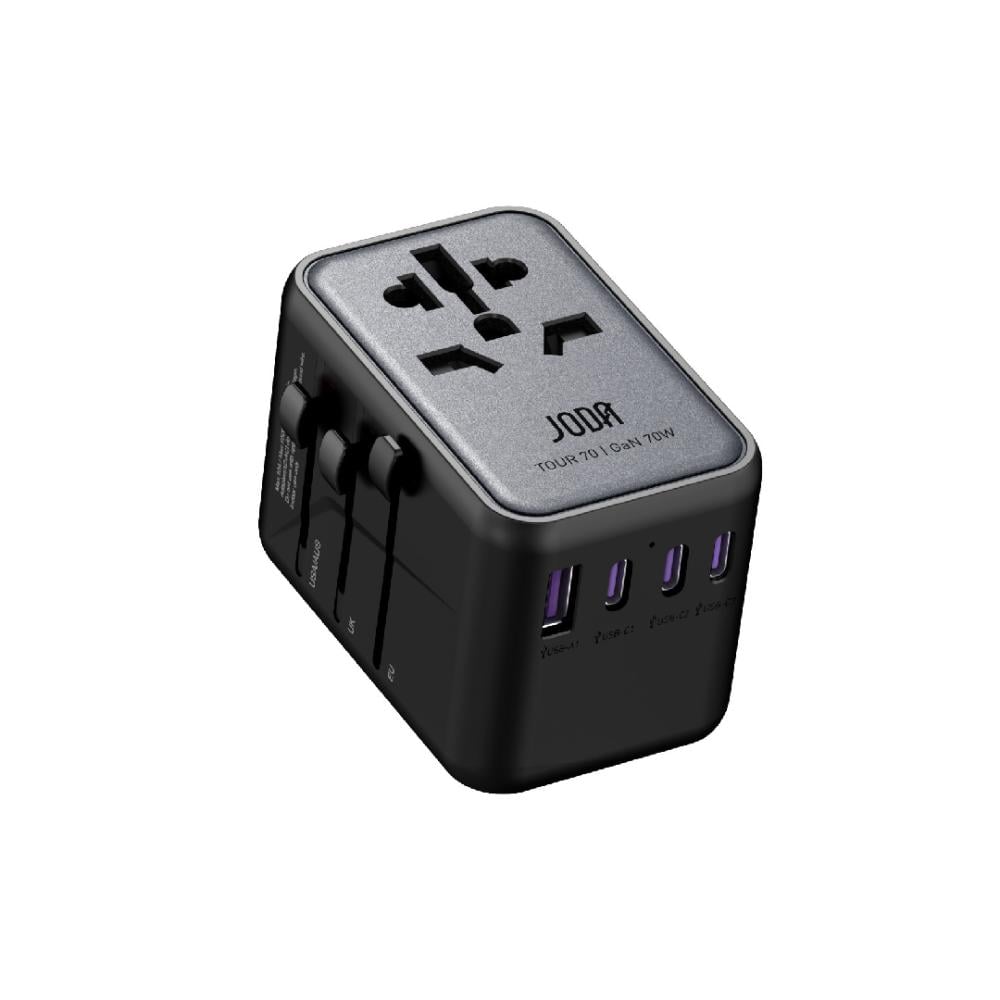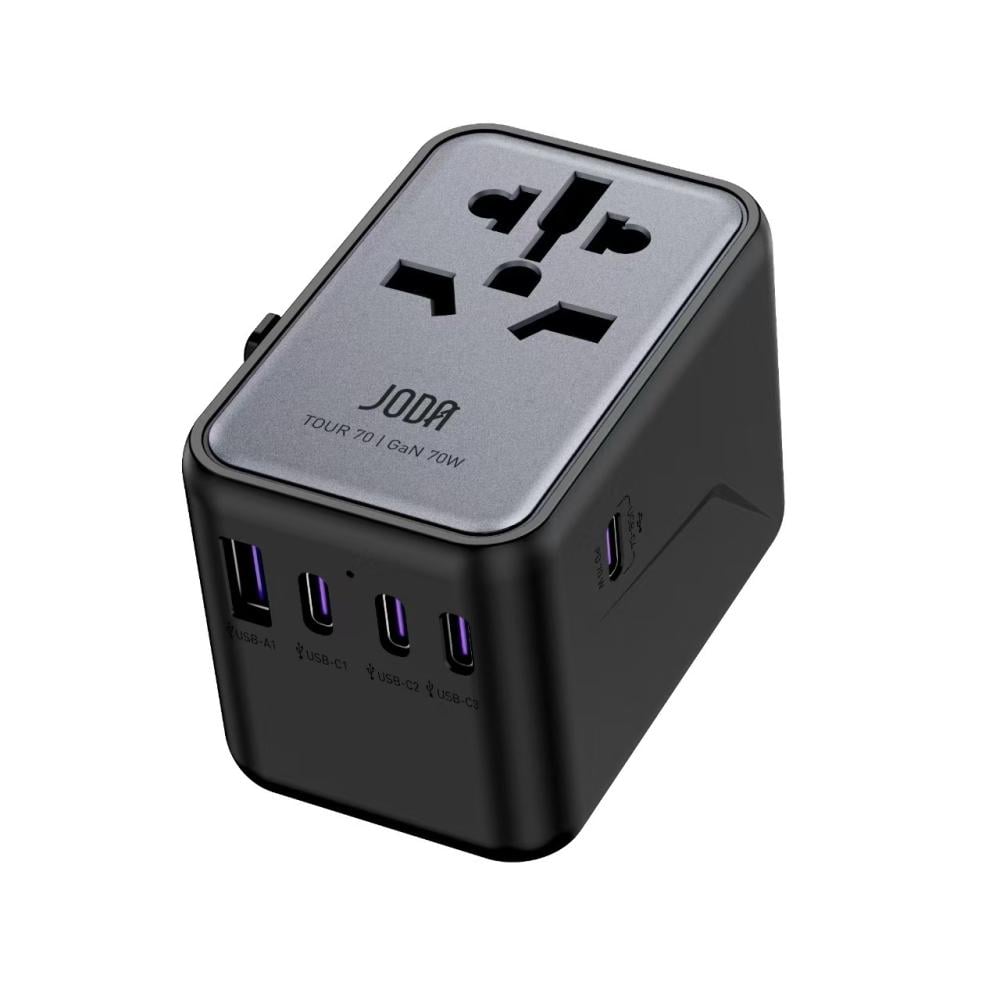 يقدم شاحن السفر جودا تور 70 (JODA TOUR 70) بقدرة 70 واط والمزوّد بتقنية GaN (Gallium Nitride) تجربة شحن فائقة السرعة والكفاءة لأجهزتك المتعددة. يأتي بتصميم مدمج ولون أسود أنيق، ما يجعله مثاليًا للاستخدام أثناء السفر أو في المنزل والمكتب. بفضل تقنية GaN المتطورة، يوفّر هذا الشاحن أداءً عالياً مع تقليل الحرارة والحجم، إلى جانب دعم شحن عدة أجهزة في وقت واحد.
