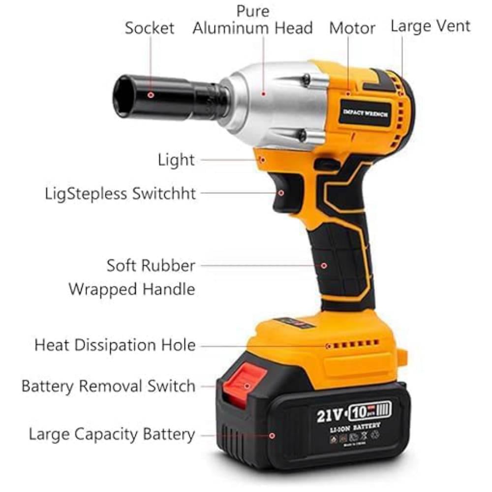 مفتاح ربط لاسلكي بدون فرش معه عزم دوران 330 نانومتروصف المنتج :نمط الرأس - سداسيالمادة - صلب الكروم فاناديومالجهد الكهربائي - 21 فولت تيار مستمرمتعددة...