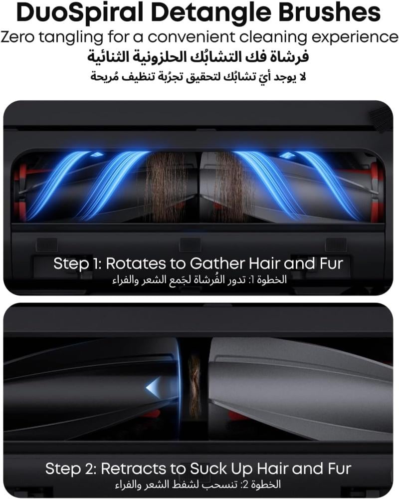 - فرش DuoSpiral المضادّة لتشابك الشعر: تقلّل تشابك الشعر وتخفّض الحاجة للصيانة المتكررة.