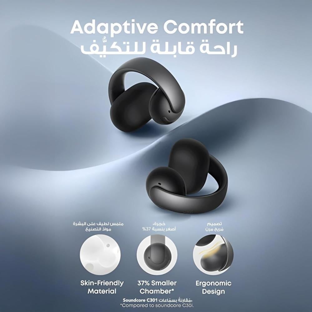ساوندكور - سماعة اذن أير كليب بلوتوث - اسودوصف المنتج:سماعات Soundcore AeroClip بتصميم مفتوح يلتف حول الأذن، تجمع بين الراحة والأمان في الاستخدام، بدو...