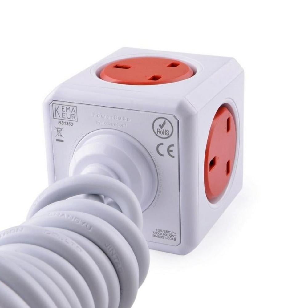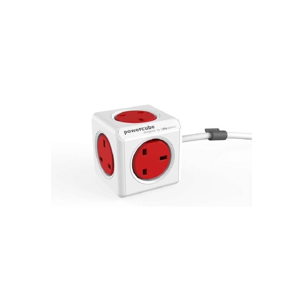 باور كيوب - توصيلة بـــ 4 مقابس وسلك مقاس 3 متر - احمروصف المنتج:مكعب الطاقة الذكي بتصميم عملي وآمن، يوفر 4 مخارج كهربائية بنظام بريطاني مع تأريض وحم...