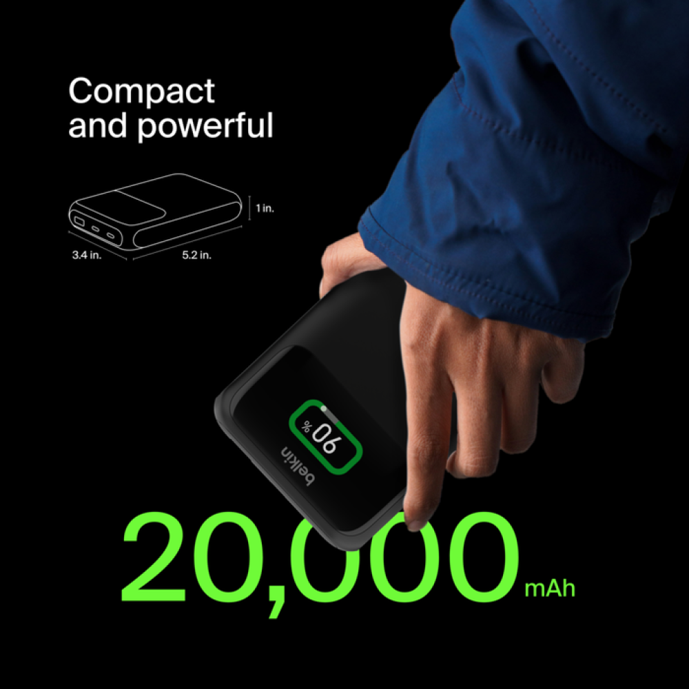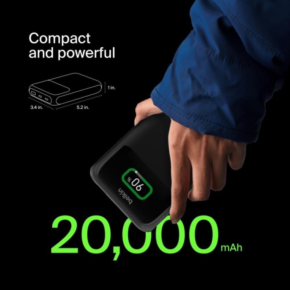 بيلكن - بطارية متنقلة 20000 ملي امبير بمنفذين تايب سي ومنفذ يو اس بي بقوة 65 واط - اسود