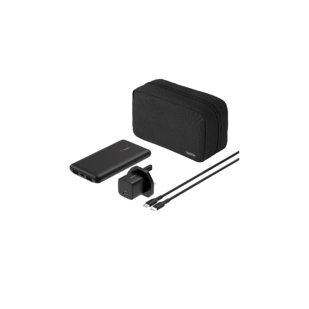 بيلكن - حقيبة السفر Power Bundle بطارية بسعة 10,000mAh وشاحن جداري بمنفذ USB-C بقوة 25W وكيبل تايب سي 1 متر - اسود