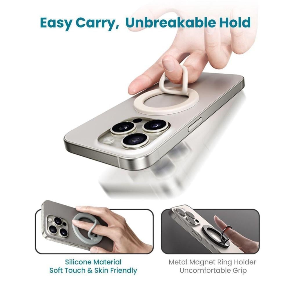 حامل حلقي مغناطيسي سيليكوني مزدوج الجوانب بتصميم عصري ومريح. يوفر ثباتًا قويًا لهاتفك، مما يسهل حمله واستخدامه في مختلف الأوضاع.