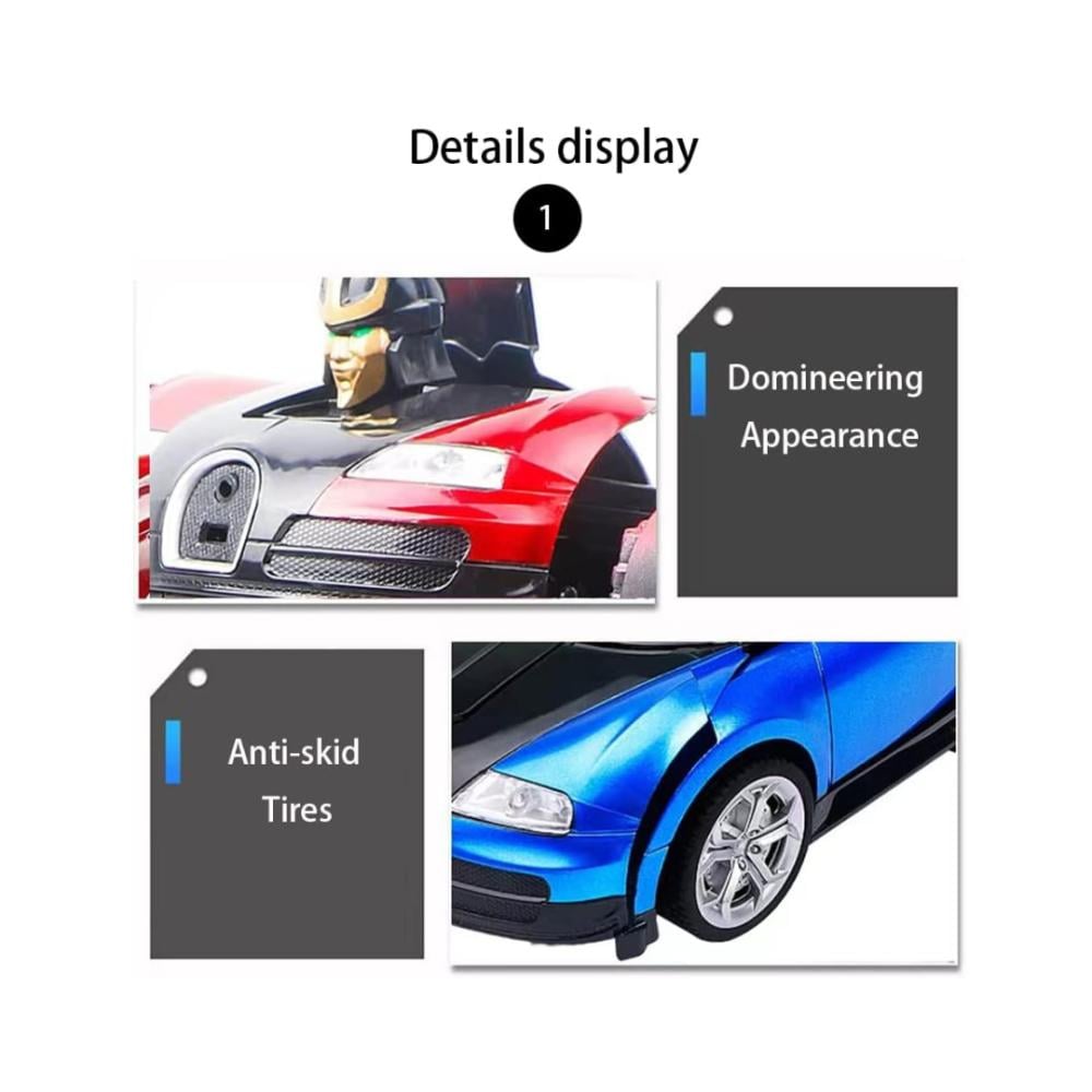 - تحريض استشعار الإيماءات وتحويل زر واحد - طريقتان مثيرة للاهتمام للعب. يمكن أن تتحول من سيارة إلى روبوت عند الضغط على الزر الموجود على وحدة التحكم أو بيدك للاستشعار. الشيء الأكثر إثارة للدهشة هو أنه يمكنه إنهاء الدوران بزاوية 360 درجة بمرونة في كل من طراز الروبوت وشكل السيارة. يتم تبديل وحدة التحكم للتحول إلى الأمام والخلف واليسار واليمين بزر واحد. بعد الضغط على زر العرض التجريبي، مصحوبًا بالموسيقى المثيرة، ستقدم لك عروضًا رائعة.