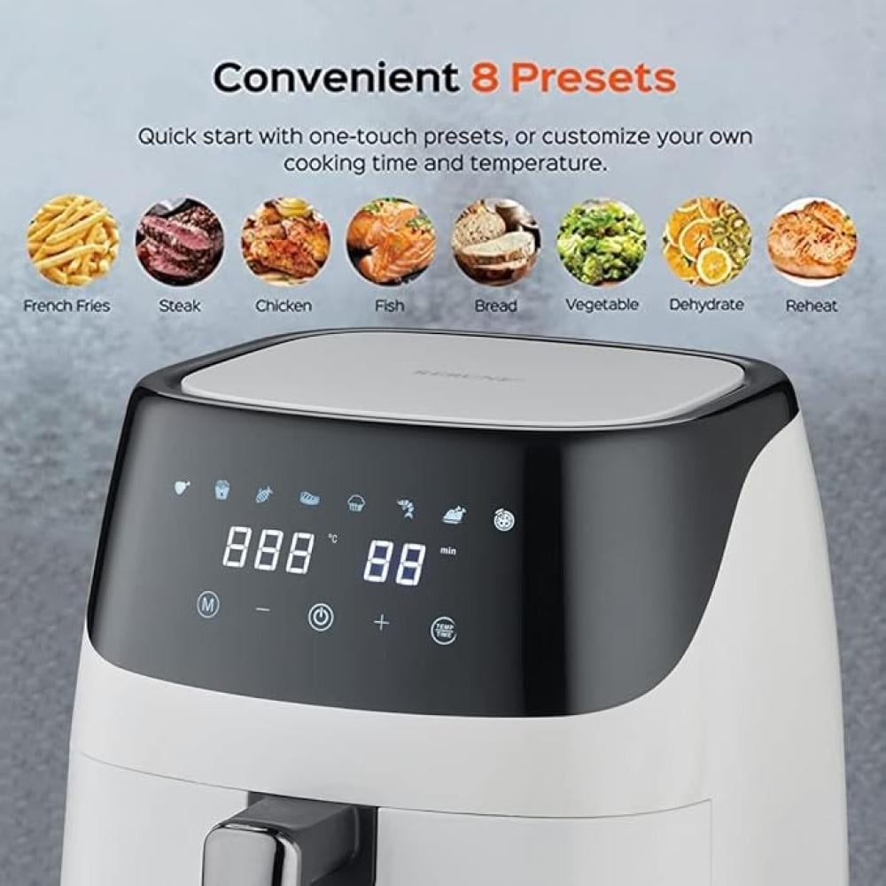 قلاية هوائية من ريبون من خلال هذة القلاية يمكنكم الحصول على مجموعة متنوعة من الأطعمة الصحية بإضافة كمية قليلة من الزيت أو بدون زيت على الإطلاق ، قدمي الذ الطبخات وأشهى المأكولات وبطريقة صحية بعيدة عن الدهون لصحة وحياة أفضل ، وبسعة خمسة لتر للوعاء وتصميم عصري جميل.
