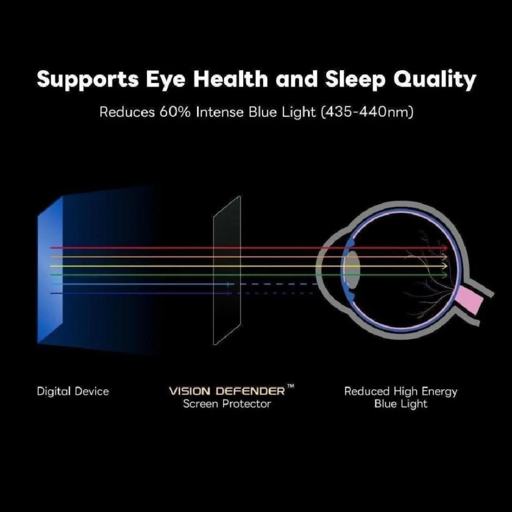 - يقلل إجهاد العين أثناء مشاهدة الفيديوهات أو استخدام التطبيقات لفترات طويلة.