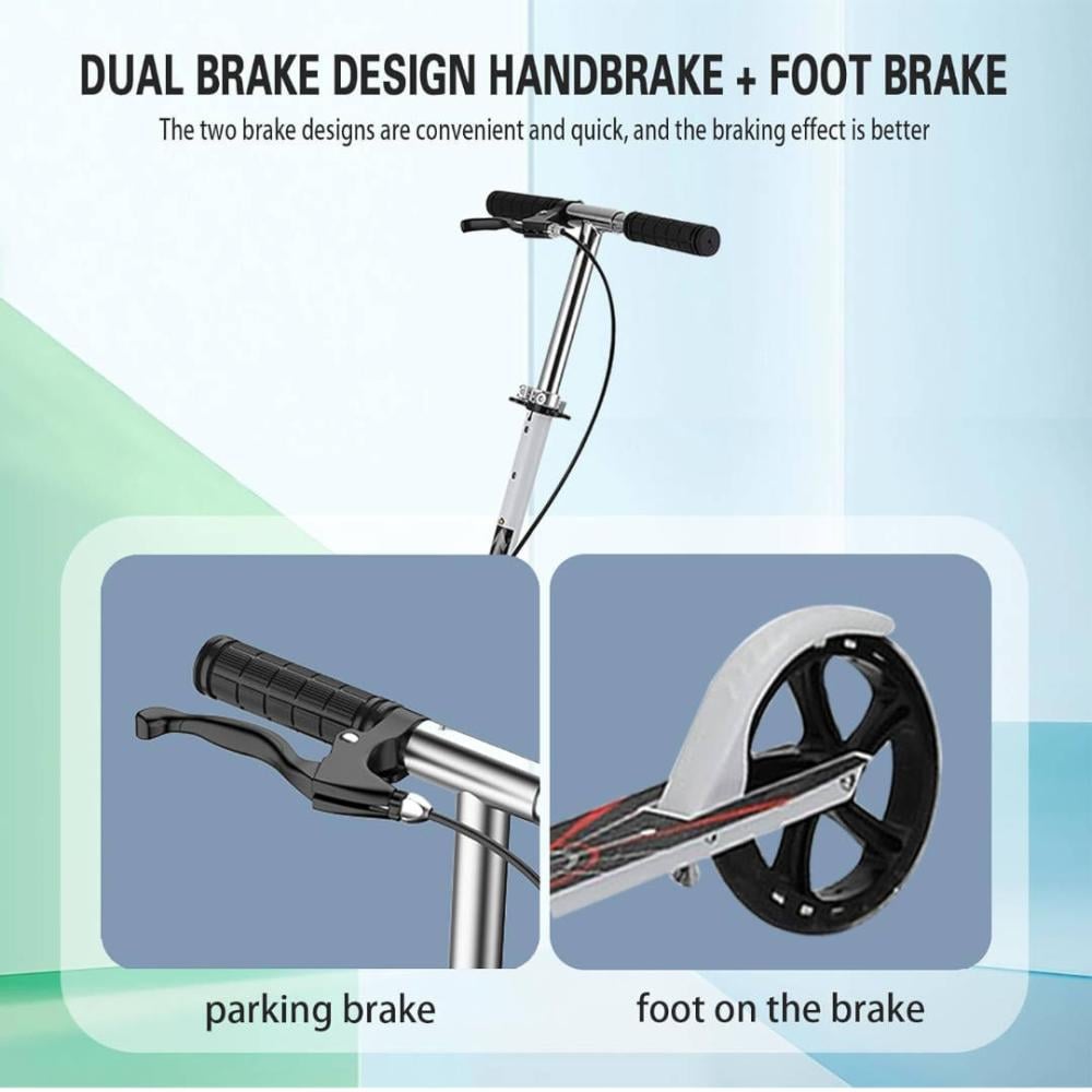- تصميم فرامل مزدوجة - يتميز سكوتر الركل بتصميم فرامل مزدوجة، وهو مريح وسريع، وتأثير الكبح أفضل، بحيث يكون لديك المزيد من الخيارات عندما تحتاج إلى الفرامل، وذلك لضمان سلامتك وركوبك بثقة أفضل.