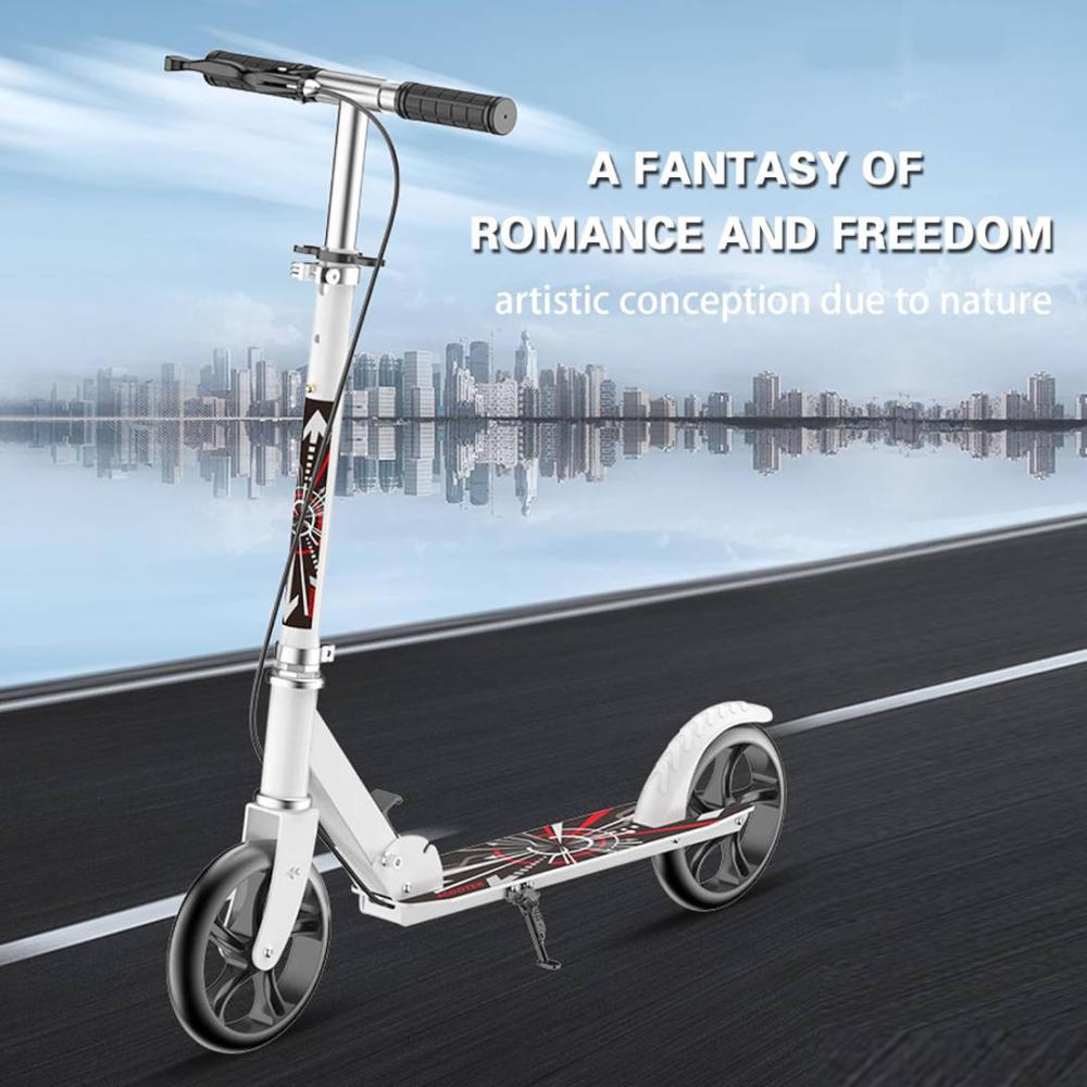 - سهلة الاستخدام - تم تصميم سكوتر الركل بعجلات كبيرة مصبوبة من البولي يوريثين مقاس 20 سم ومحامل دقيقة (ABEC-7) من أجل دوران أكثر سلاسة للعجلة وأداء تمرير أفضل من أجل قيادة سلسة ومريحة وسلسة.
