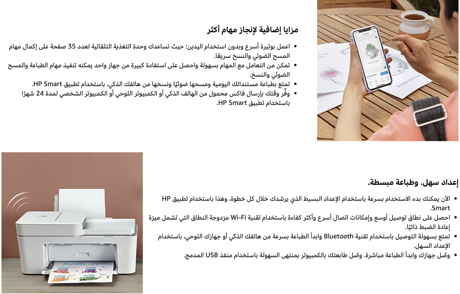 HP طابعة ديسك جيت بلس 4120 الكل في واحد متعددة المهام بكل سهولة - تم إعدادها باستخدام تطبيق HP الذكي، احصل على توفير لاسلكي وحبر بدون قلق. مثالية لمستخدمي الطابعات المنزلية الذين يرغبون في حلول تقنية موثوقة وسهلة الاستخدام لمنحهم كل ما يحتاجون إليه للطباعة والمسح الضوئي والنسخ بشكل أكثر ذكاءً وأسرع.