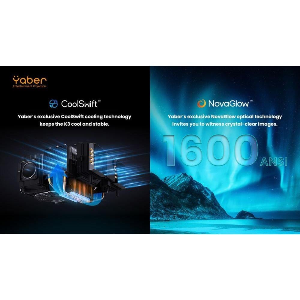 يابر - K3 بروجكتر ذكي محمول مع مكبر صوت جي بي ال مزدوج بقوة 15 واط - اسودوصف المنتج:دقة 1080 بكسل مع 1600 لومن ANSI.تبريد فعال، أداء ثابت.مكبرا صوت ست...
