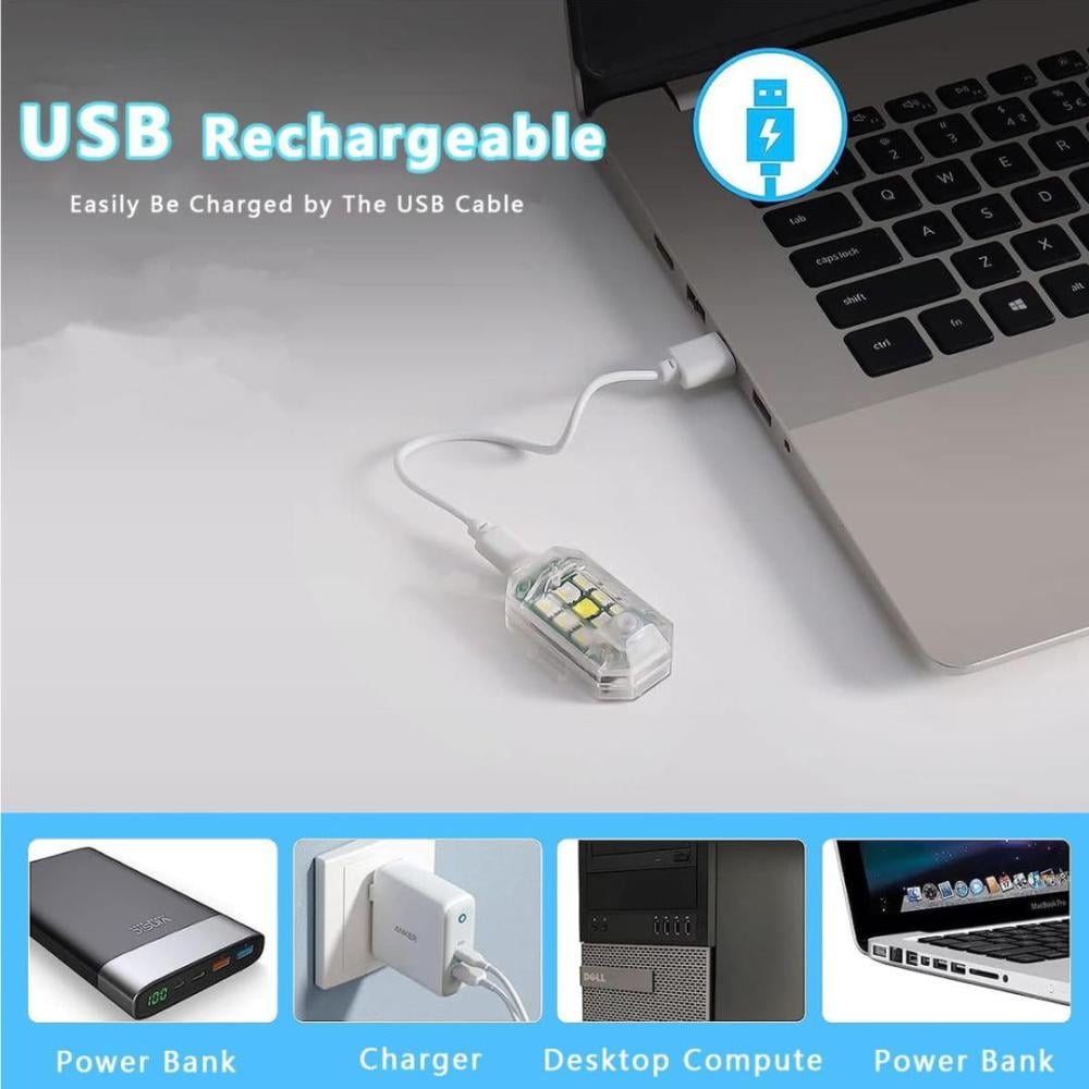 - تصميم مقاوم للماء واستخدام واسع - خضع مصباح LED المغناطيسي المضاد للتصادم لاختبار احترافي مقاوم للماء ويمكنه التكيف بشكل مثالي مع البيئات الخارجية المختلفة. تتميز مصابيح LED القوية هذه بوظيفة التحكم عن بعد اللاسلكية، ويمكن تبديل وضع مصابيح الإشارة الوامضة للطائرات عن بعد عند الطيران في الهواء. سواء كنت للتخييم أو الصيد أو ركوب الدراجات أو القيادة أو الطائرات بدون طيار أو تفعل أي شيء في الليل، فإن مصباح LED الوامض الذي يشحن بمنفذ USB هو الرفيق المثالي.