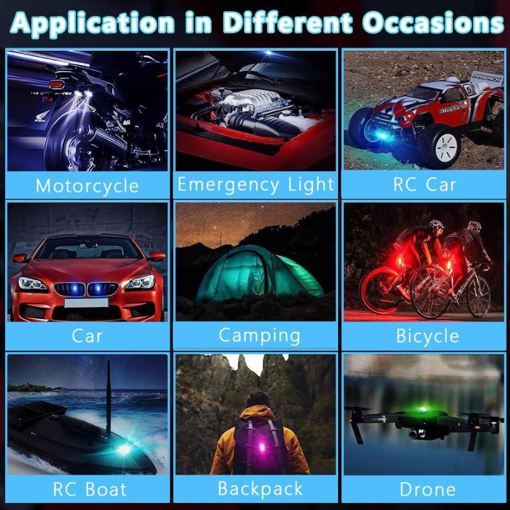 - إضاءة LED وامضة لاسلكية عالية السطوع - مصابيح LED وامضة للطائرة هي جنون لعشاق الرياضة في الهواء الطلق. جذبت المظهر الجديد وأروع أسلوب ركوب وأكثرها إثارة والأضواء الملونة انتباه العديد من المتفرجين. اظهر انطباعًا مع مصباح LED الوامض اللاسلكي الخاص بنا المثالي لعشاق الرياضة في الهواء الطلق، كن مركز الاهتمام مع مصباح LED القوي الذي يتميز بسطوع عالٍ وأضواء ملونة.