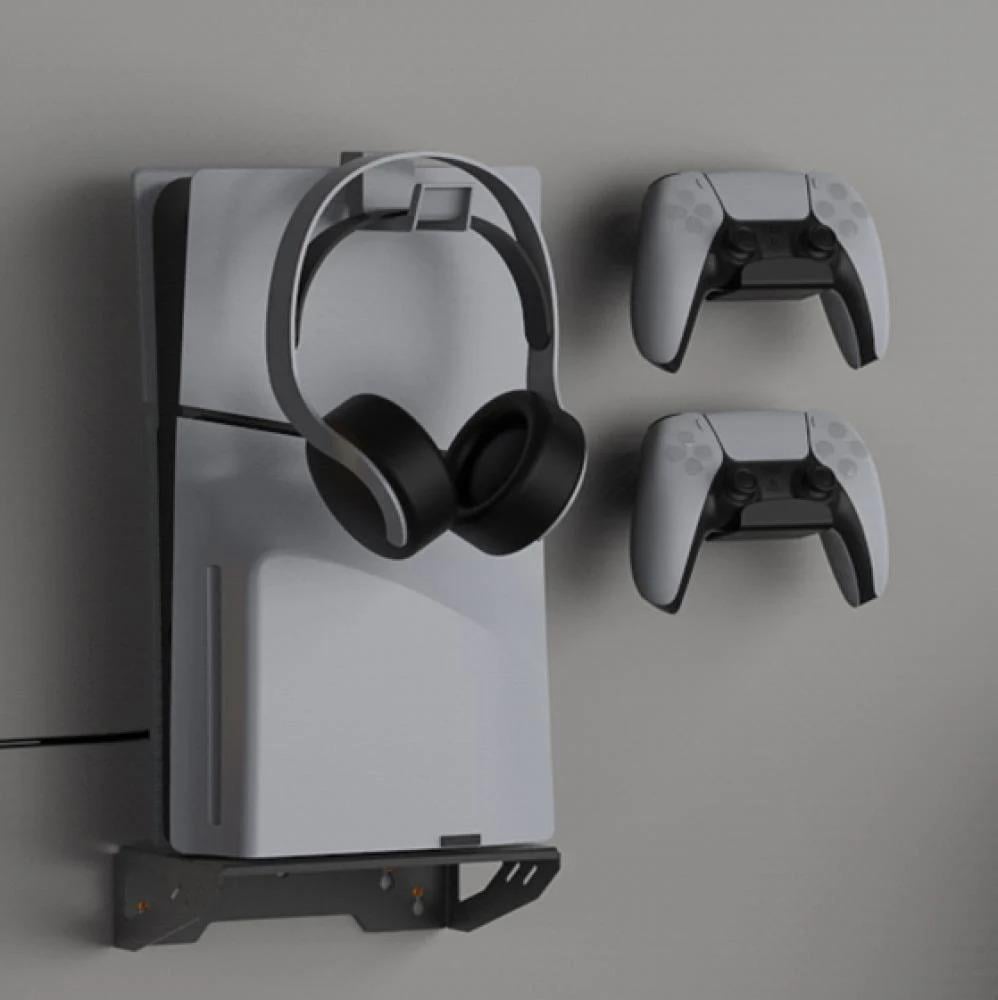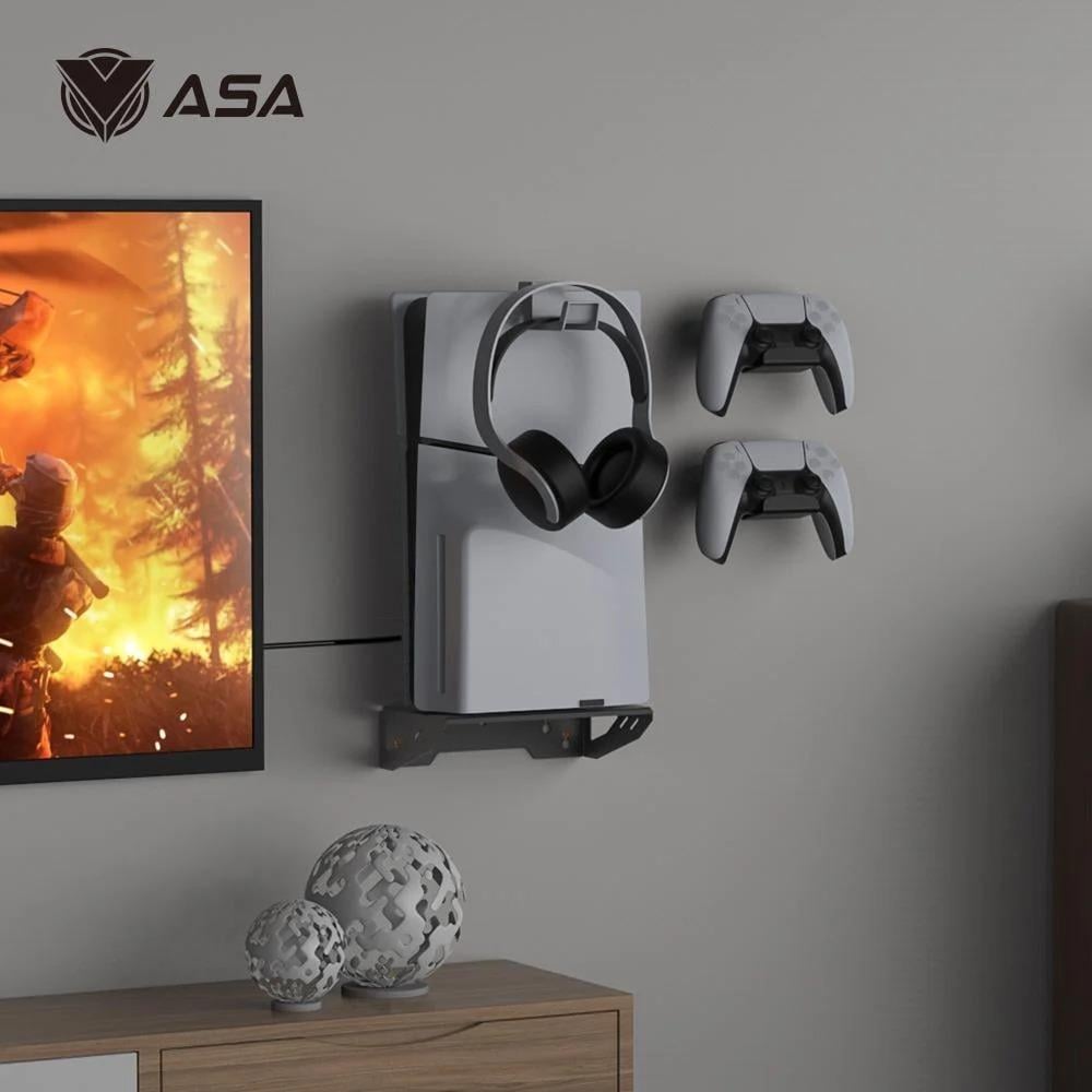 اسا - حامل تثبيت جداري للبلايستيشن 5 ولسماعة الراس ولوحدة تحكم بلايستيشن 5 - اسود