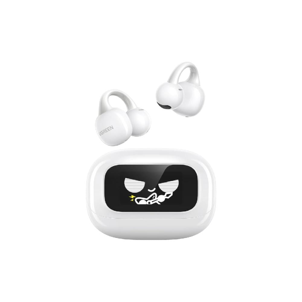 يوجرين - سماعات أذن لاسلكية ClipBuds Magic Nc مفتوحة الأذن مع شاشة عرض - ابيض