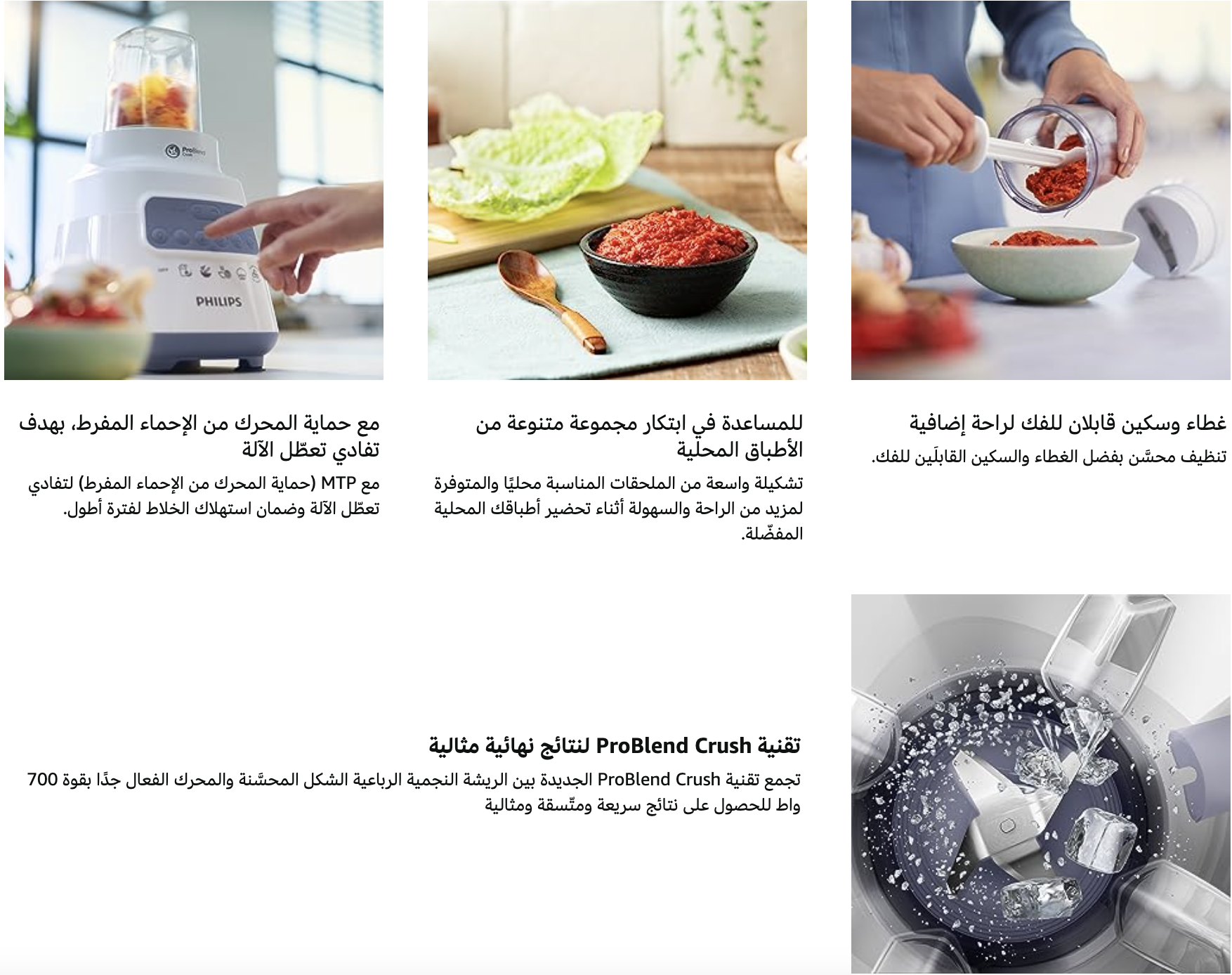فيليبس - خلاط مطبخ للإستخدام اليومي بمطور 700 واط لخلط ناعم بسعة 1.5 لتر