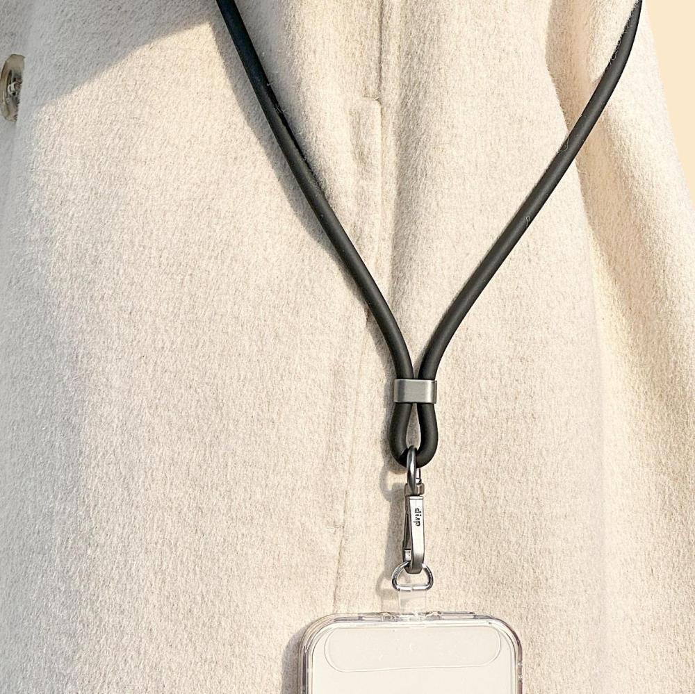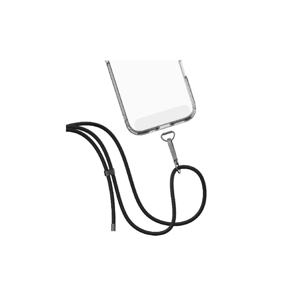 حزام عبور من السيليكون مع حلقات تثبيت للهاتف بلون أسود، مصمم لتوفير راحة وأمان أكبر عند حمل هاتفك. يسمح لك هذا الحزام بحمل هاتفك بسهولة حول عنقك أو كتفك مع إبقائه ثابتًا بفضل الحلقات الخاصة، مما يجعله مثاليًا للاستخدام اليومي أو السفر.